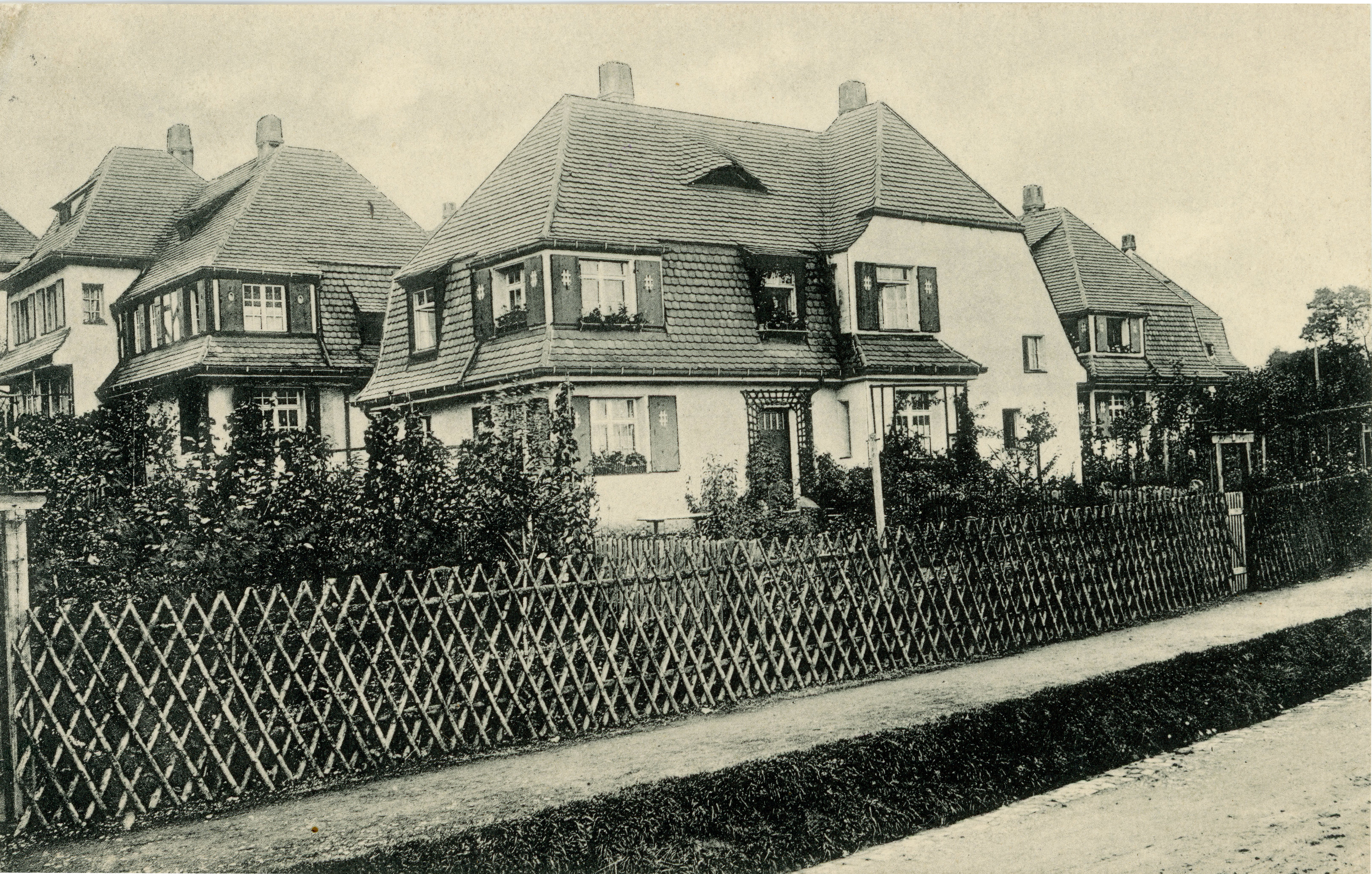 | Beschreibung | Wohnbebauung von der Baugenossenschaft im Eigenen Heim, hier Vacher Straße 109 - im Hintergrund links das Gebäude Heimgartenstraße 24, gel. 1914 | ||