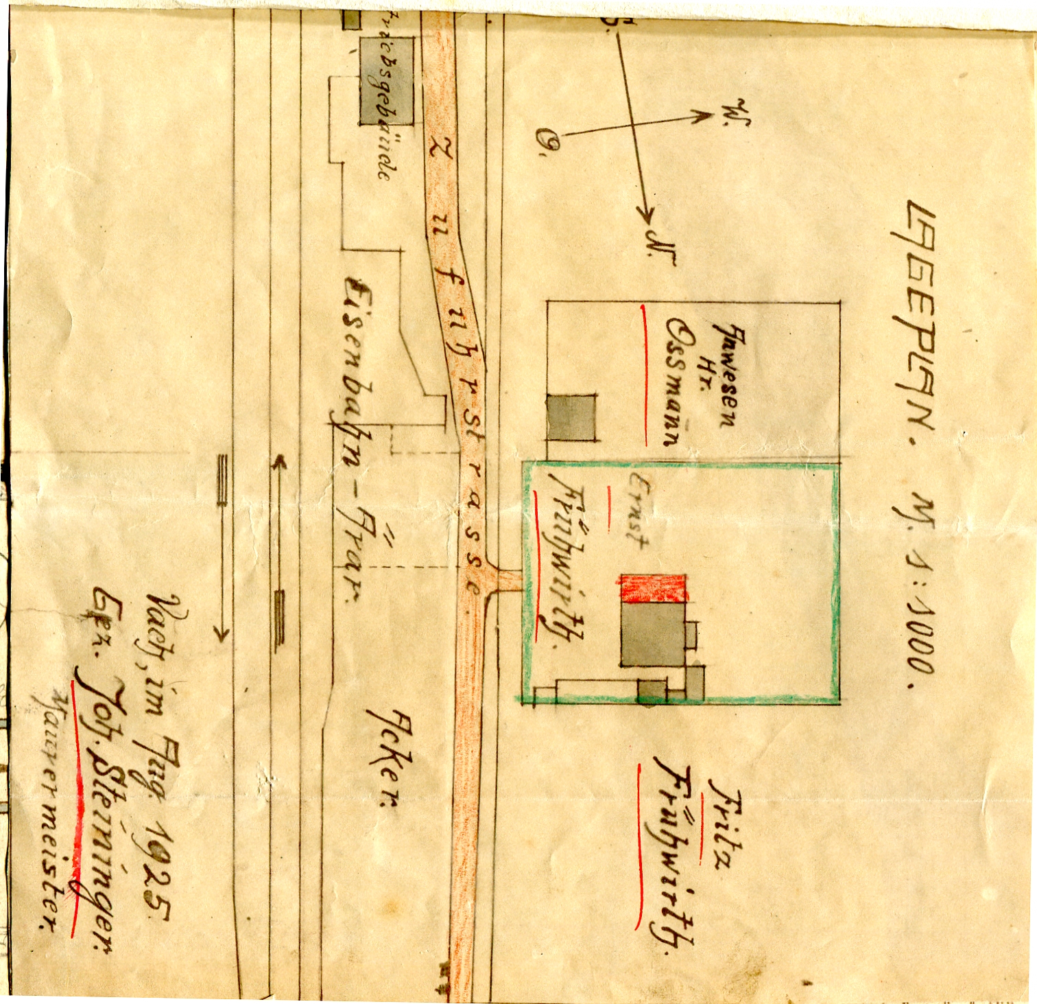 Bauplan 1925 der Gaststätte Zur Eisenbahn Stadeln am Bahnhof Vach über Anbau eines Gast- und Nebenzimmers