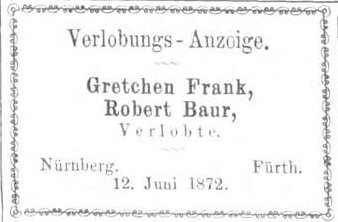 Verlobungsanzeige von Robert Baur, Juni 1872 Erstellungsdatum: Juni 1872<br>Lizenz: noc-nc-1.0