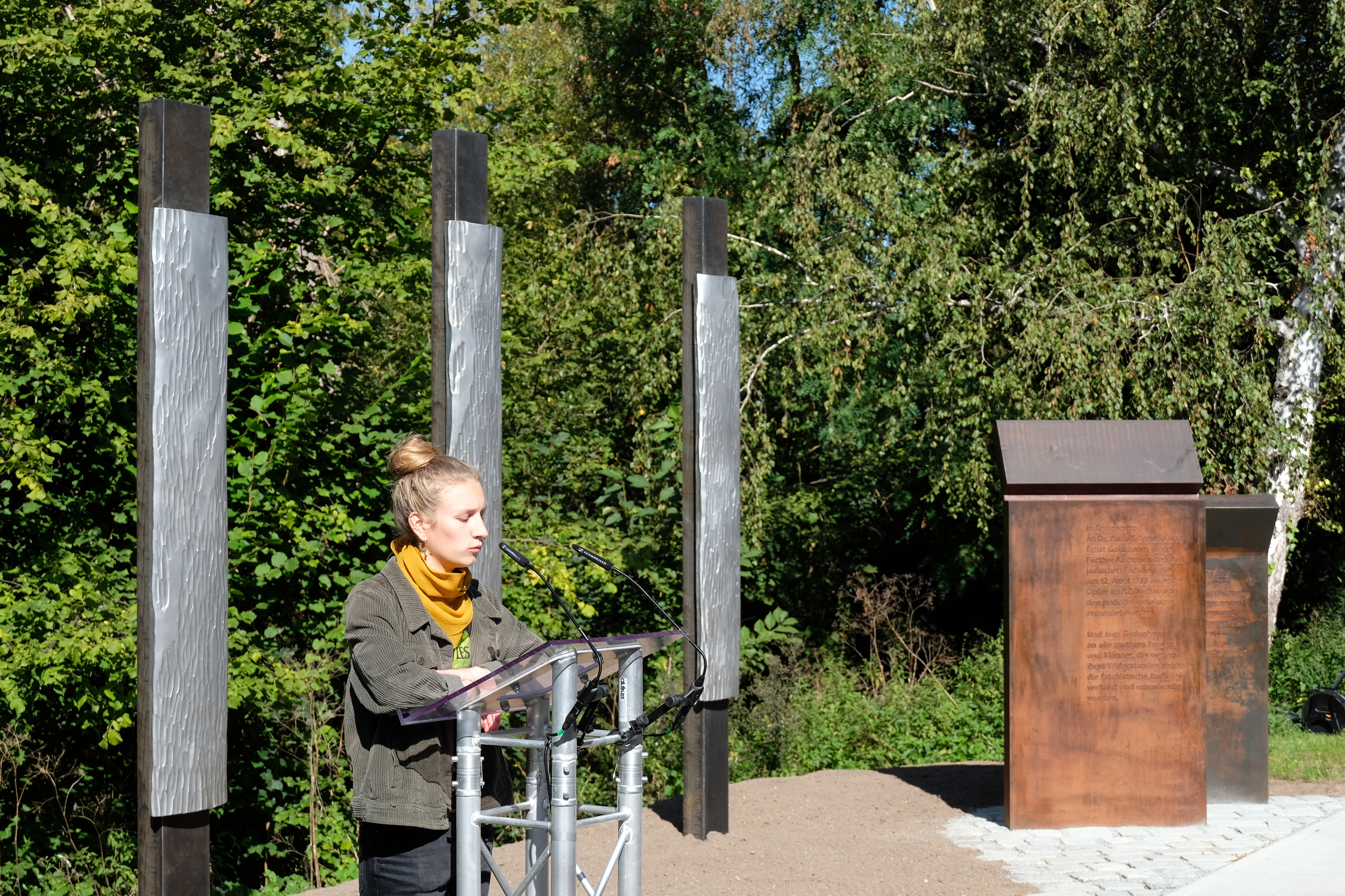 | Beschreibung | Eröffnung der Benario-Goldmann-Gedenkstätte, hier im Bild eine Vertreterin des Bündnisses gegen Rechts beim Verlesen eines Grußwortes von Angehörigen Goldmanns aus Deutschland und Australien, Sept. 2020 | ||