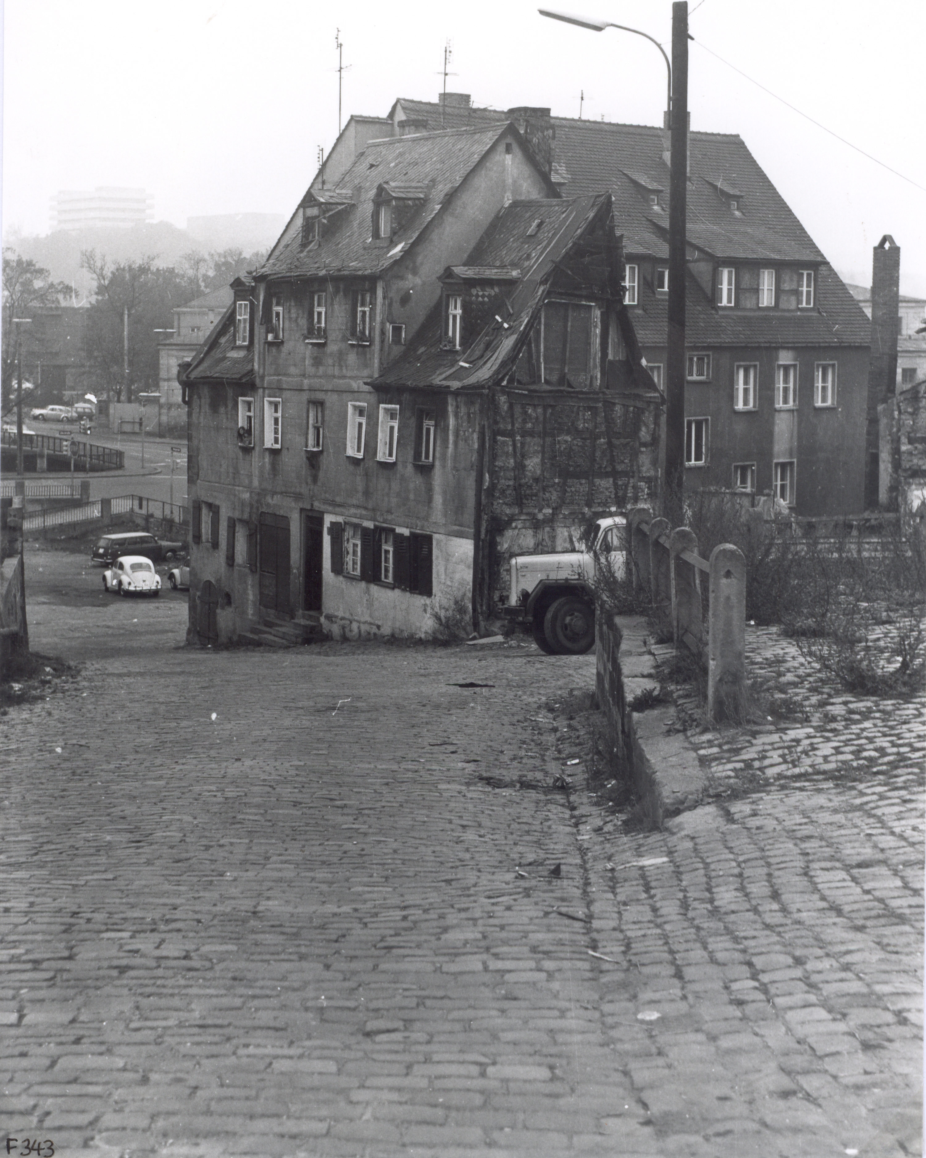Bergstraße 28 (Pinsenschaum) Abbruchphase während Sanierungsprojekt Urheber: unbekannt<br>Lizenz: CC BY-SA 3.0
