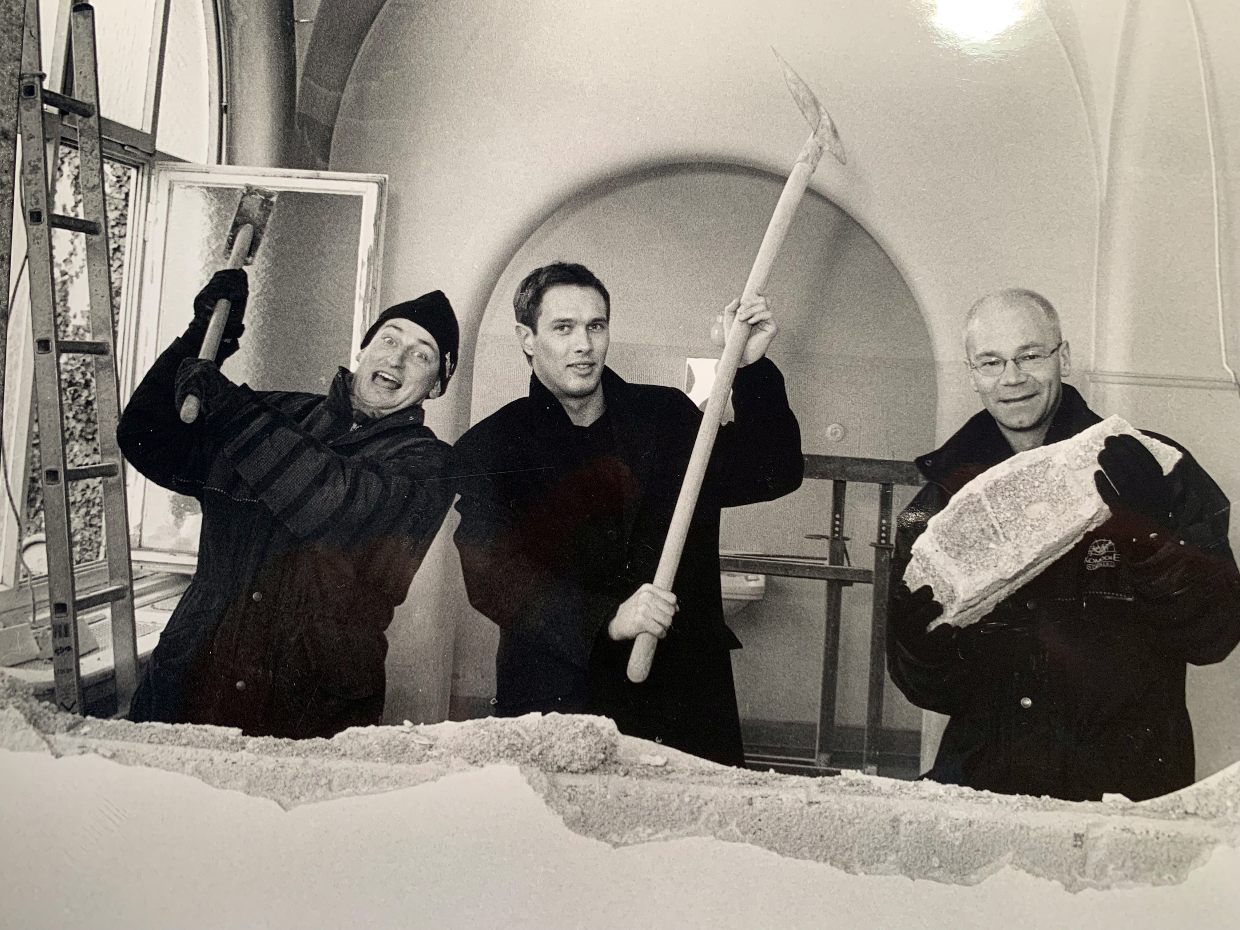 | Beschreibung | Renovierungsarbeiten im Berolzheimerianum zur Comödie Fürth mit Volker Heißmann, Michael Urban und Martin Rassau, ca. 1997 | ||