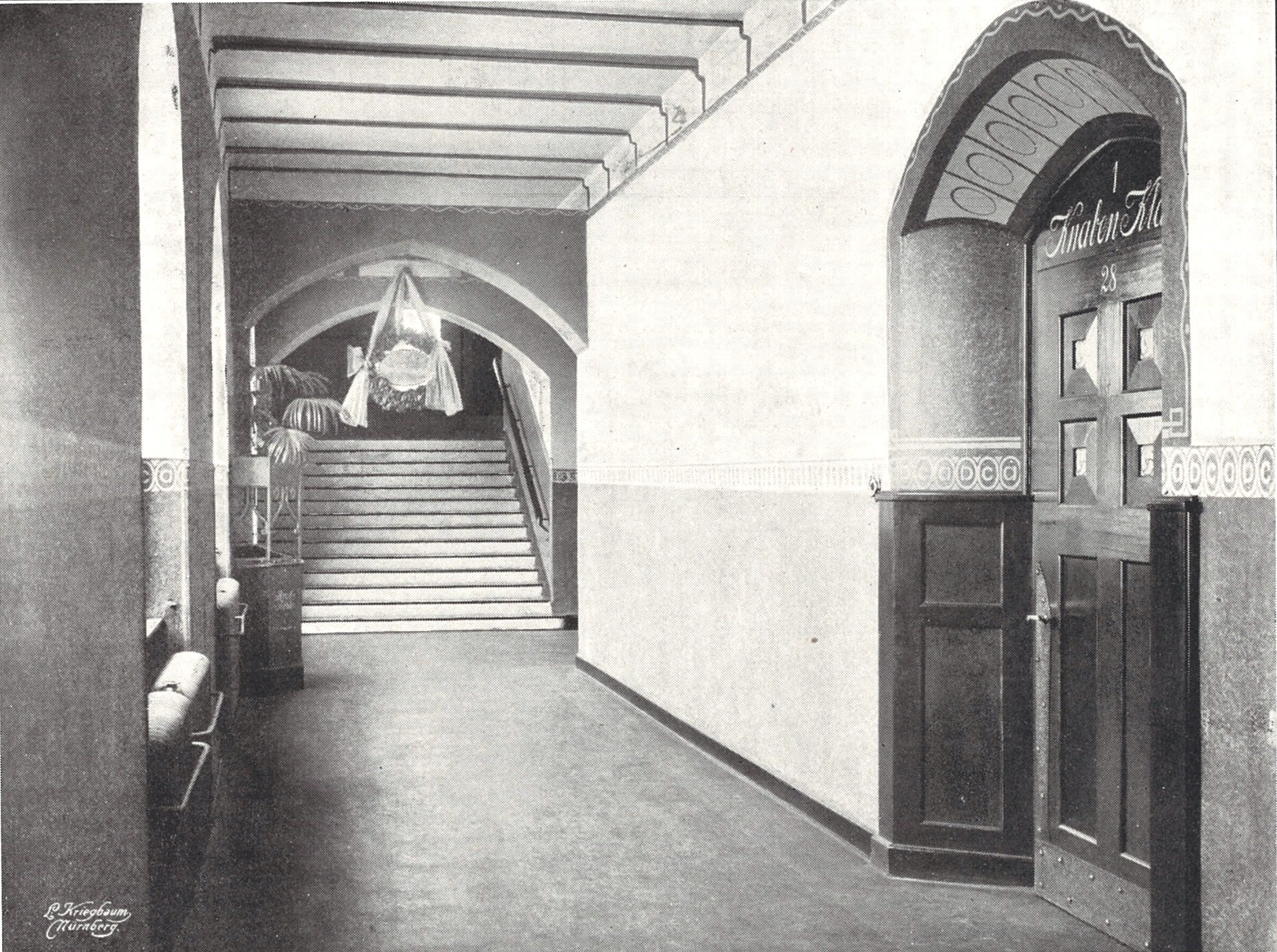 | Dateiinfo (Bild-Unterschrift und Info-Box, automatisch erstellt) | Pestalozzischule, Gang und Schulsaaltüre, Pestalozzistr. 20, Aufnahme um 1907 Urheber: L. Kriegbaum, Nürnberg<br>Über Datum: 1907<br>Lizenz: cc-by-sa-3.0 | ||