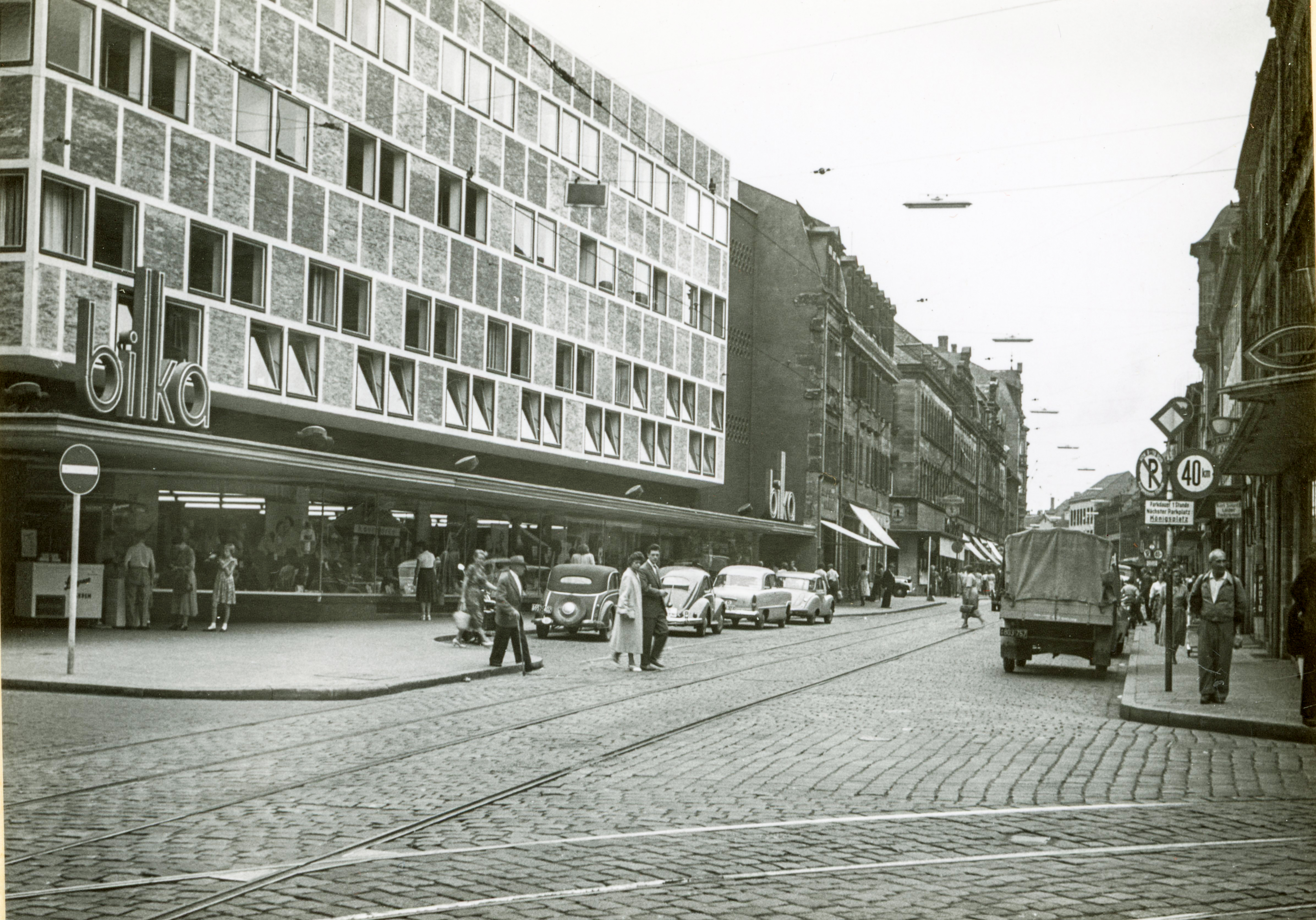 | Beschreibung | Das ehem. Kaufhaus Bilka in der Schwabacher Straße, 1957 | ||