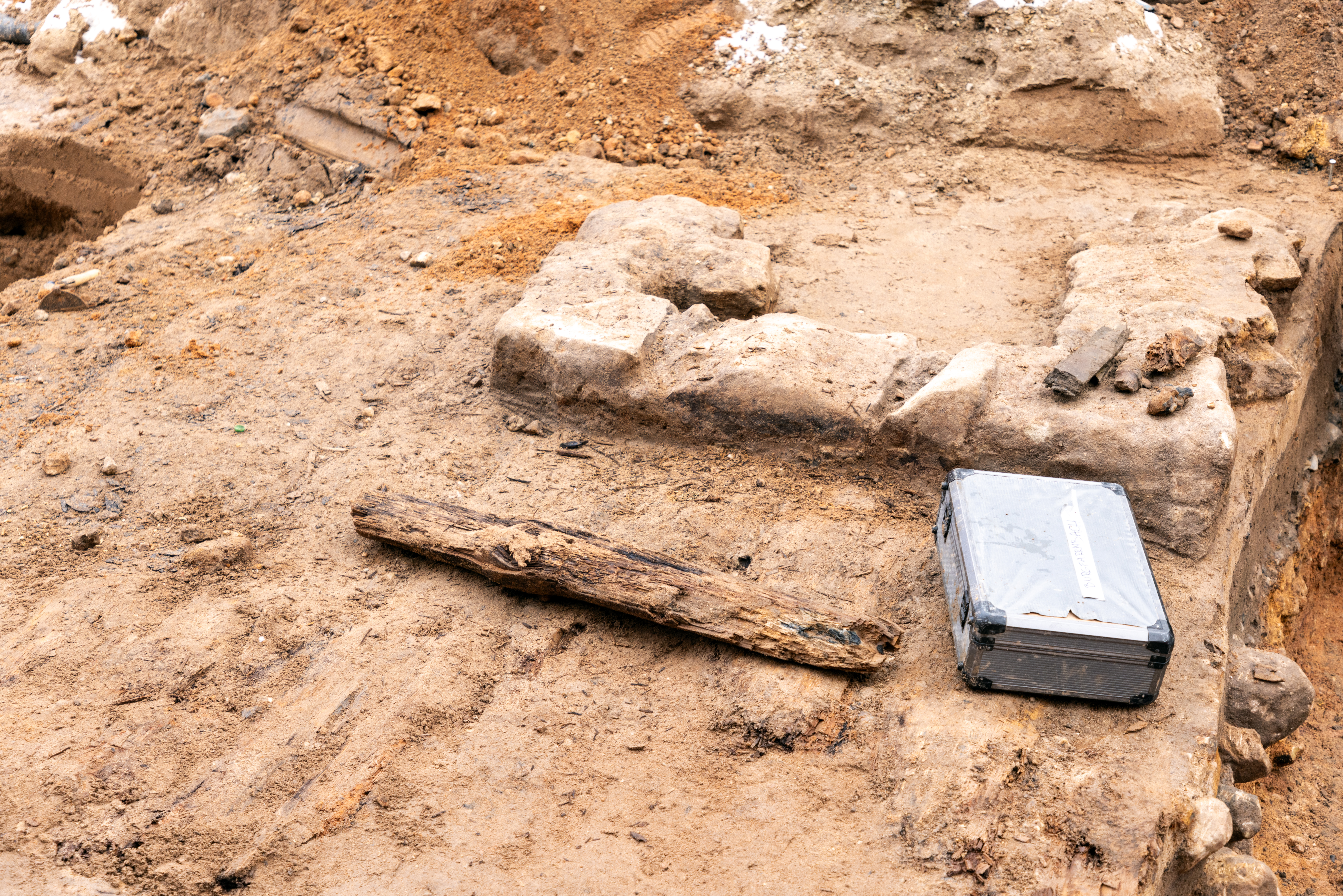 | Beschreibung | Archäologische Ausgrabungsarbeiten in Würzburg Straße in Burgfarrnbach, Dez. 2023 | ||