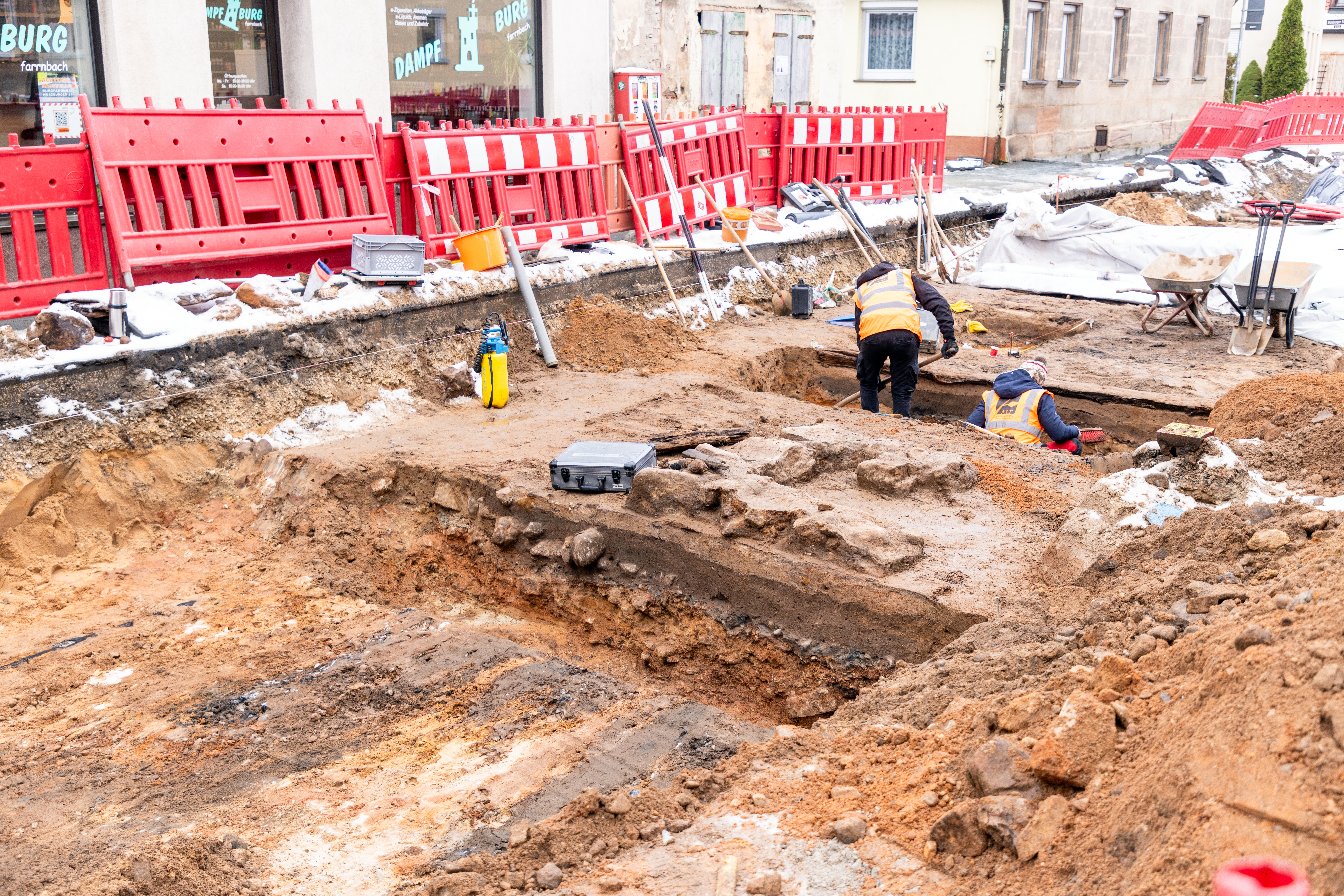 | Beschreibung | Archäologische Ausgrabungsarbeiten in Würzburg Straße in Burgfarrnbach, Dez. 2023 | ||