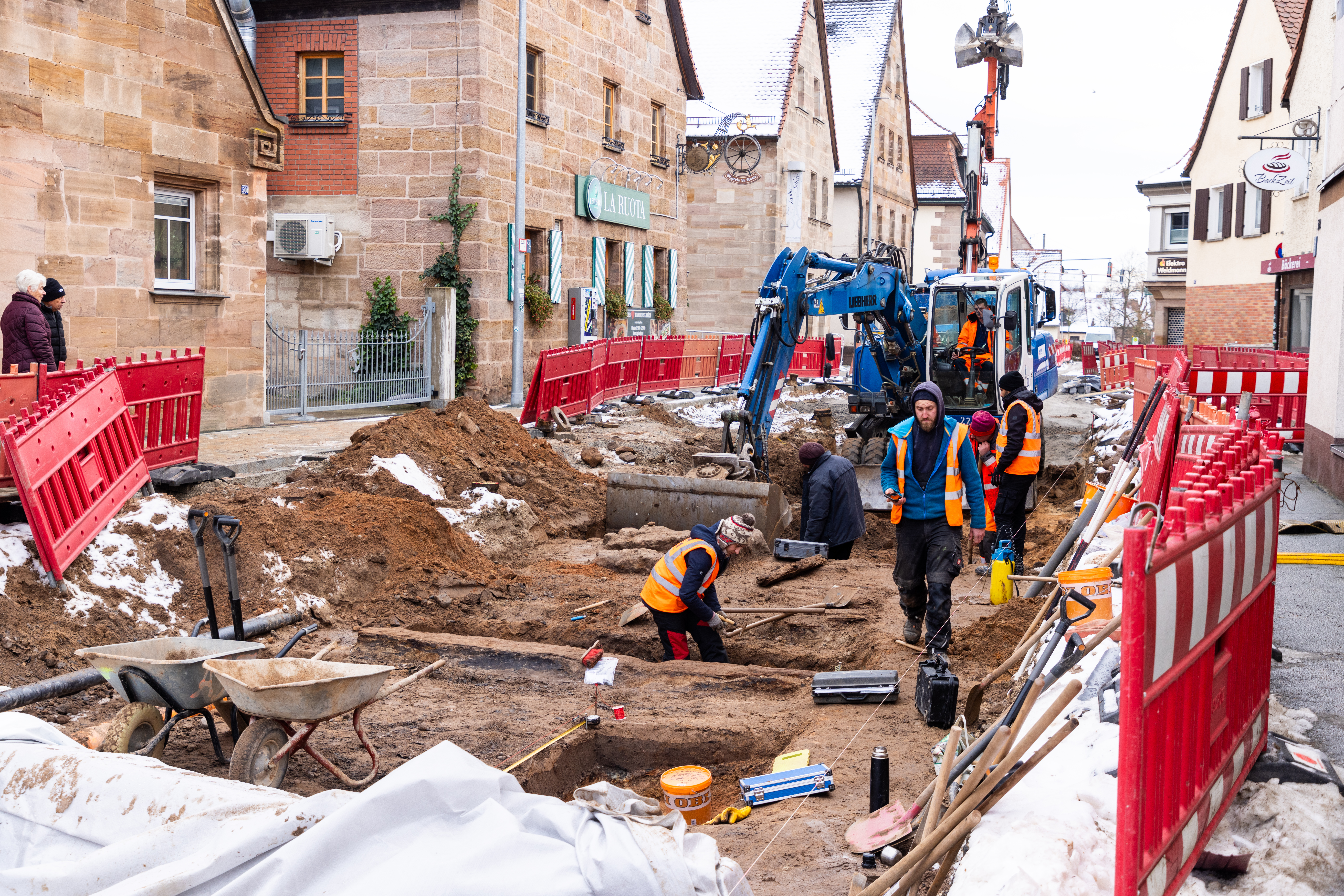 | Beschreibung | Archäologische Ausgrabungsarbeiten in Würzburg Straße in Burgfarrnbach, Dez. 2023 | ||