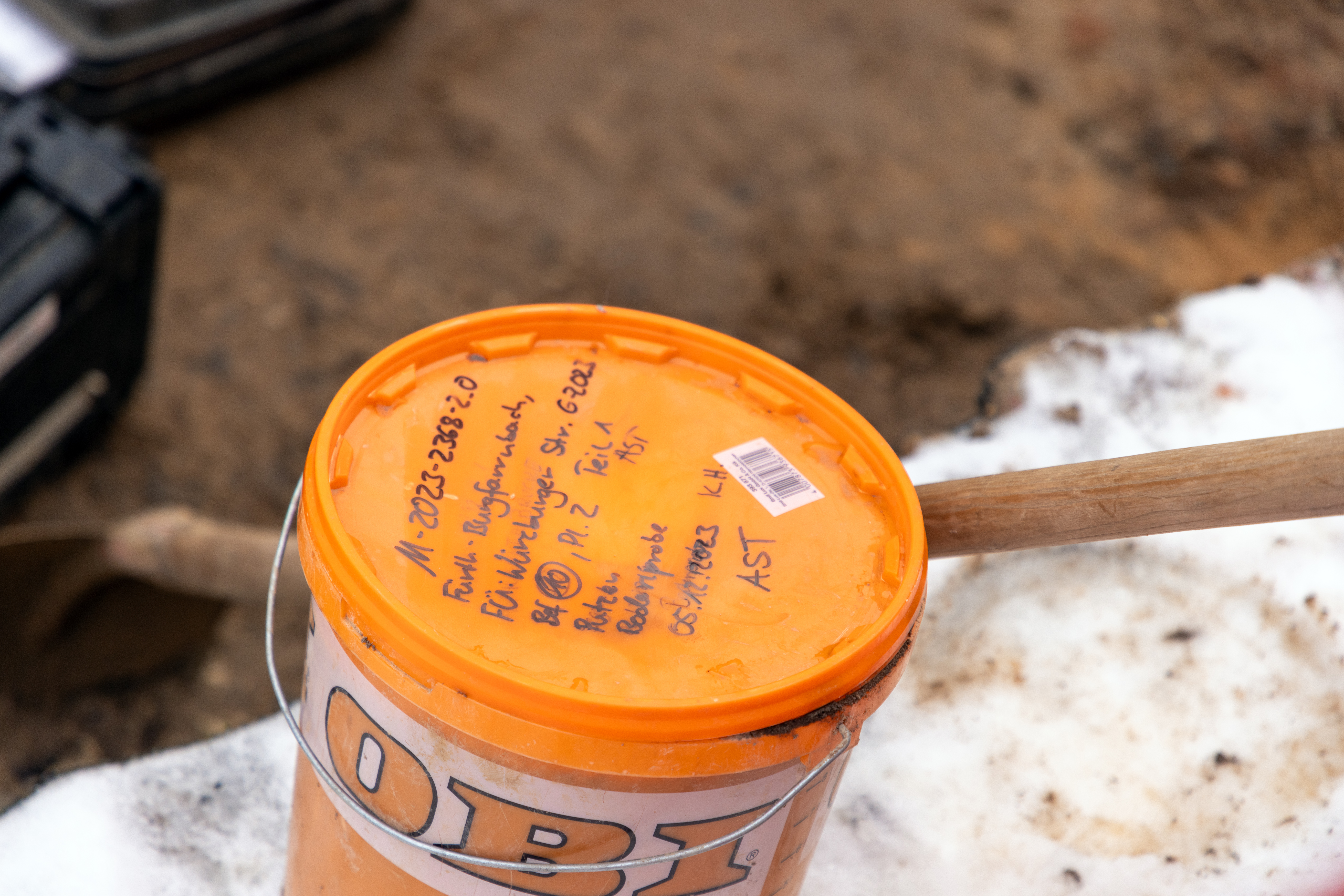 | Beschreibung | Archäologische Ausgrabungsarbeiten in Würzburg Straße in Burgfarrnbach, Dez. 2023 | ||