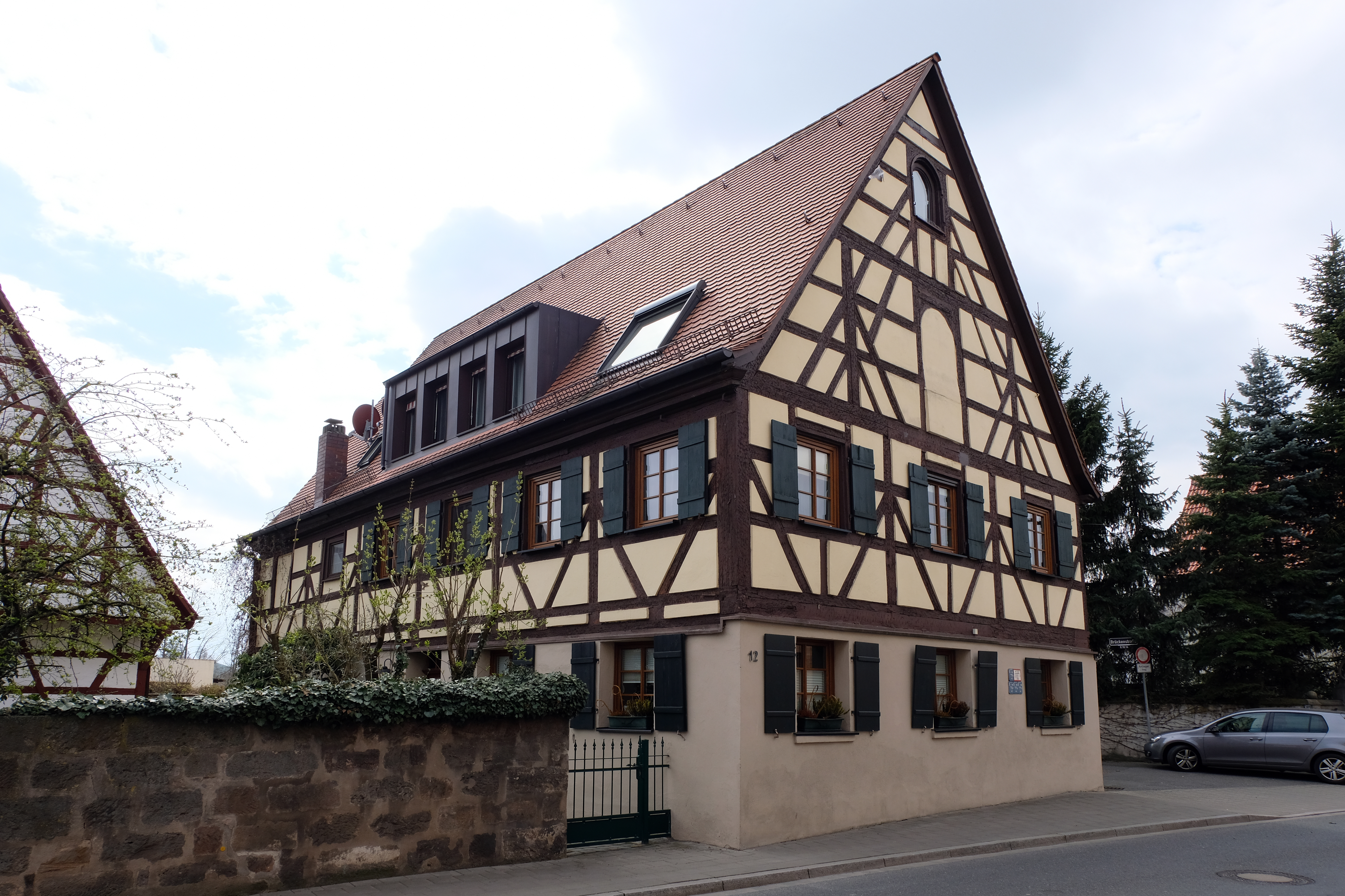 | Beschreibung | Fachwerkhaus Brückenstraße 12 in Vach, April 2020 | ||