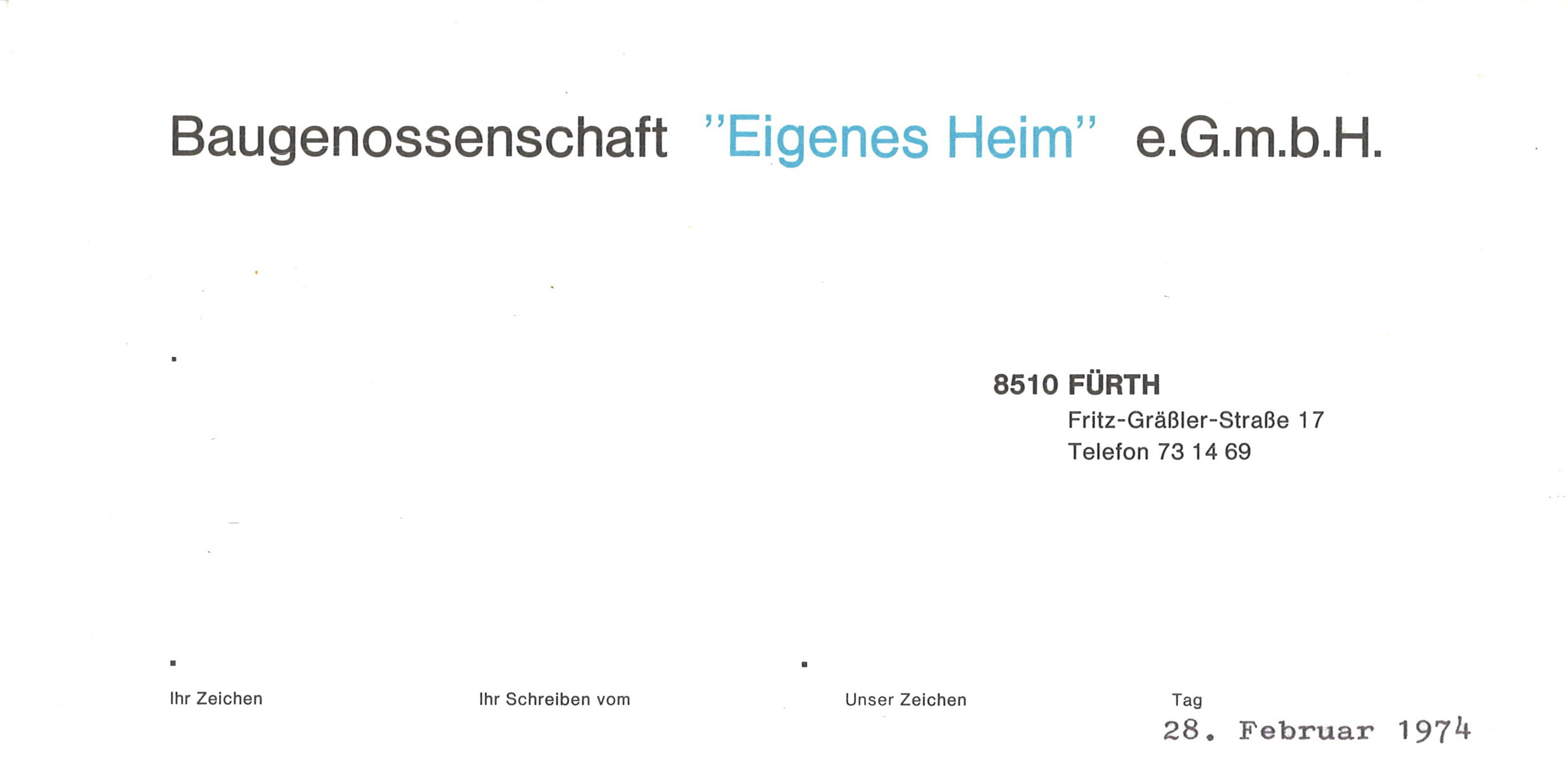 Historischer Briefkopf der Baugenossenschaft Eigenes Heim von 1974 Erstellungsdatum: 28. Februar 1974<br>Lizenz: cc-by-sa-3.0