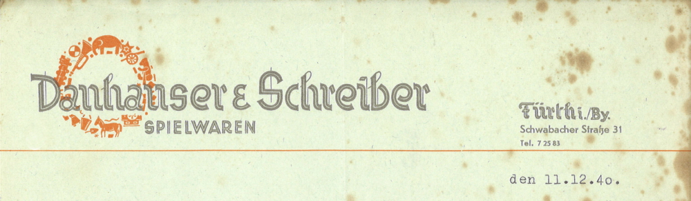 | Dateiinfo (Bild-Unterschrift und Info-Box, automatisch erstellt) | historischer Geschäftsbrief der Fa. Danhauser & Schreiber Urheber: Danhauser & Schreiber Spielwaren<br>Erstellungsdatum: 11. Dezember 1940<br>Lizenz: cc-by-sa-3.0 | ||