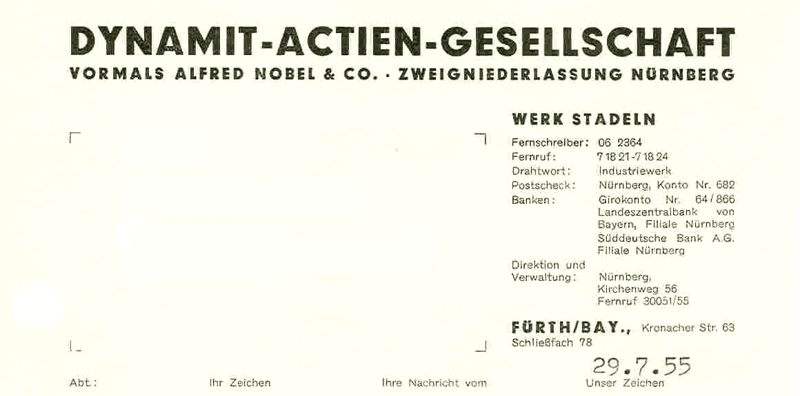 BeschreibungHistorischer Briefkopf der Fa. Dynamit-Nobel von 1955