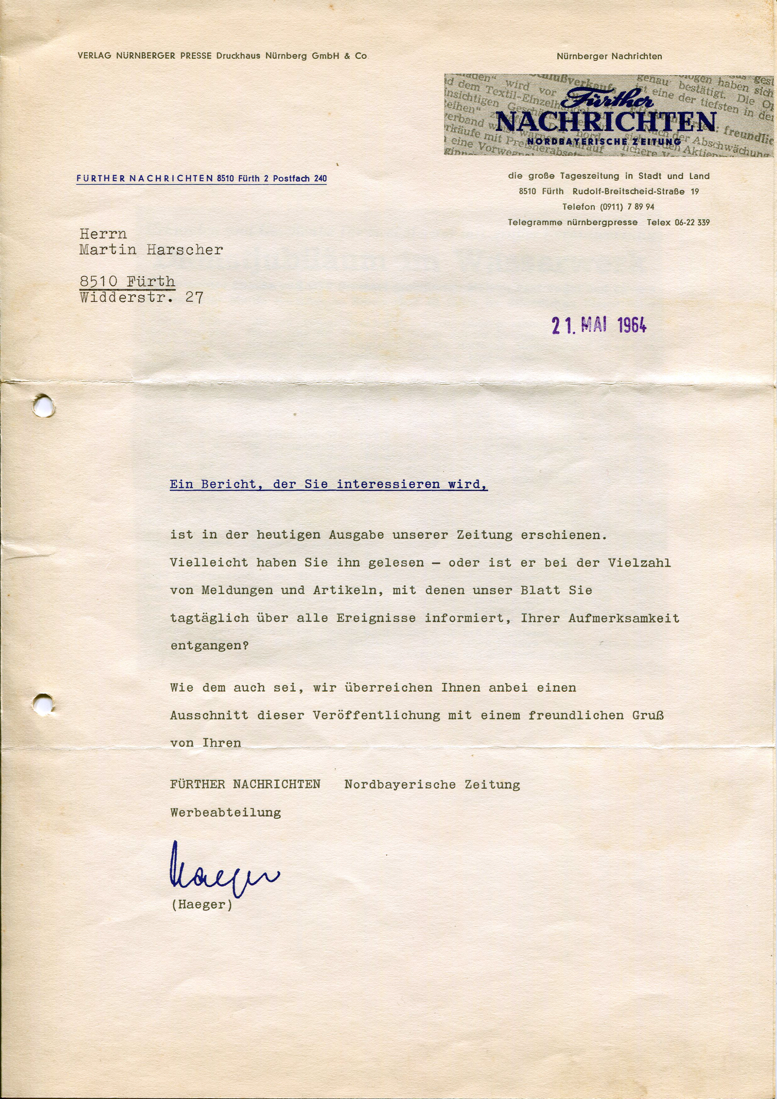 | Beschreibung | Briefkopf der Fürther Nachrichten, 1964 | ||