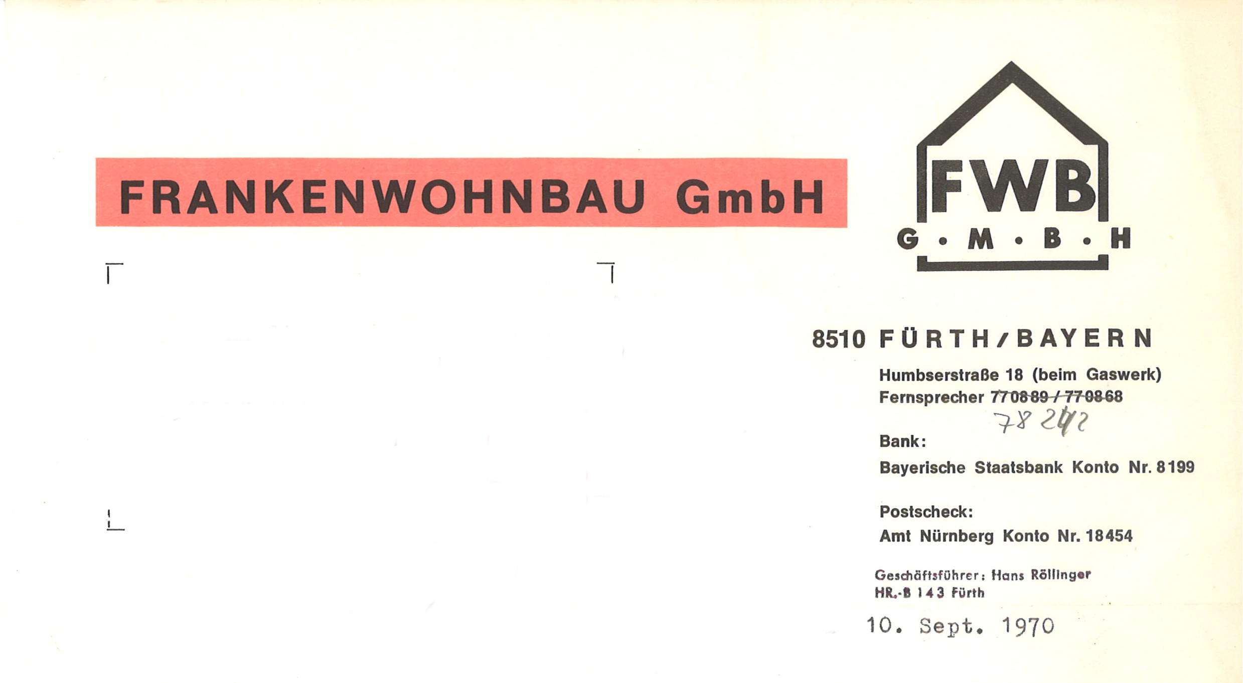| Beschreibung | Briefkopf der Firma Franken-Wohnbau GmbH von 1970 | ||
