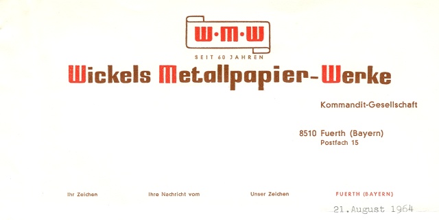 | Beschreibung | Historischer Briefkopf der Fa. Wickels Papierveredelungs-Werke von 1964 | ||