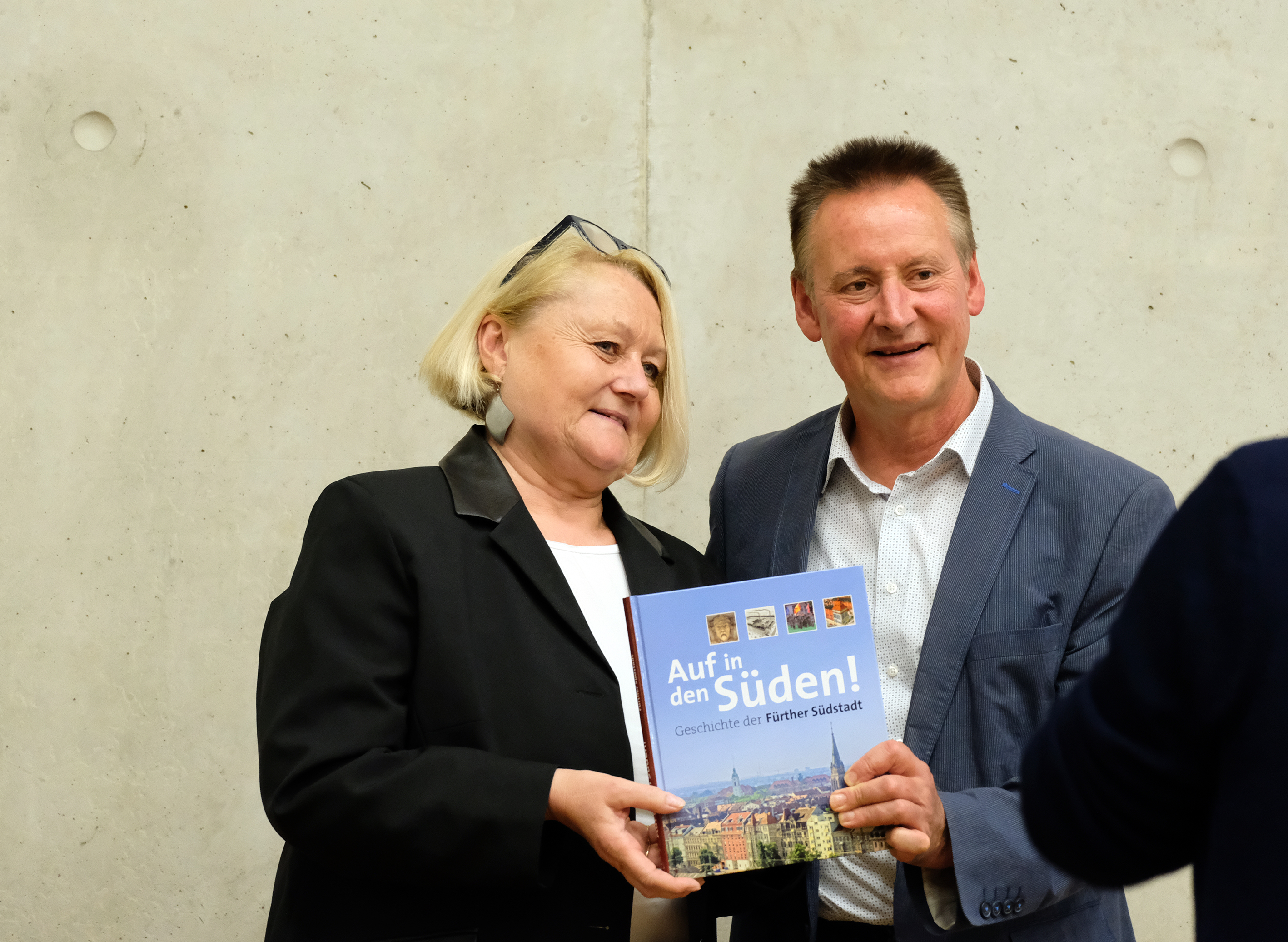 BeschreibungOberbürgermeister Dr. Thomas Jung und Stadtheimatpflegerin Karin Jungkunz bei der Buchpräsentation "Auf in den Süden" am 28. September 2017