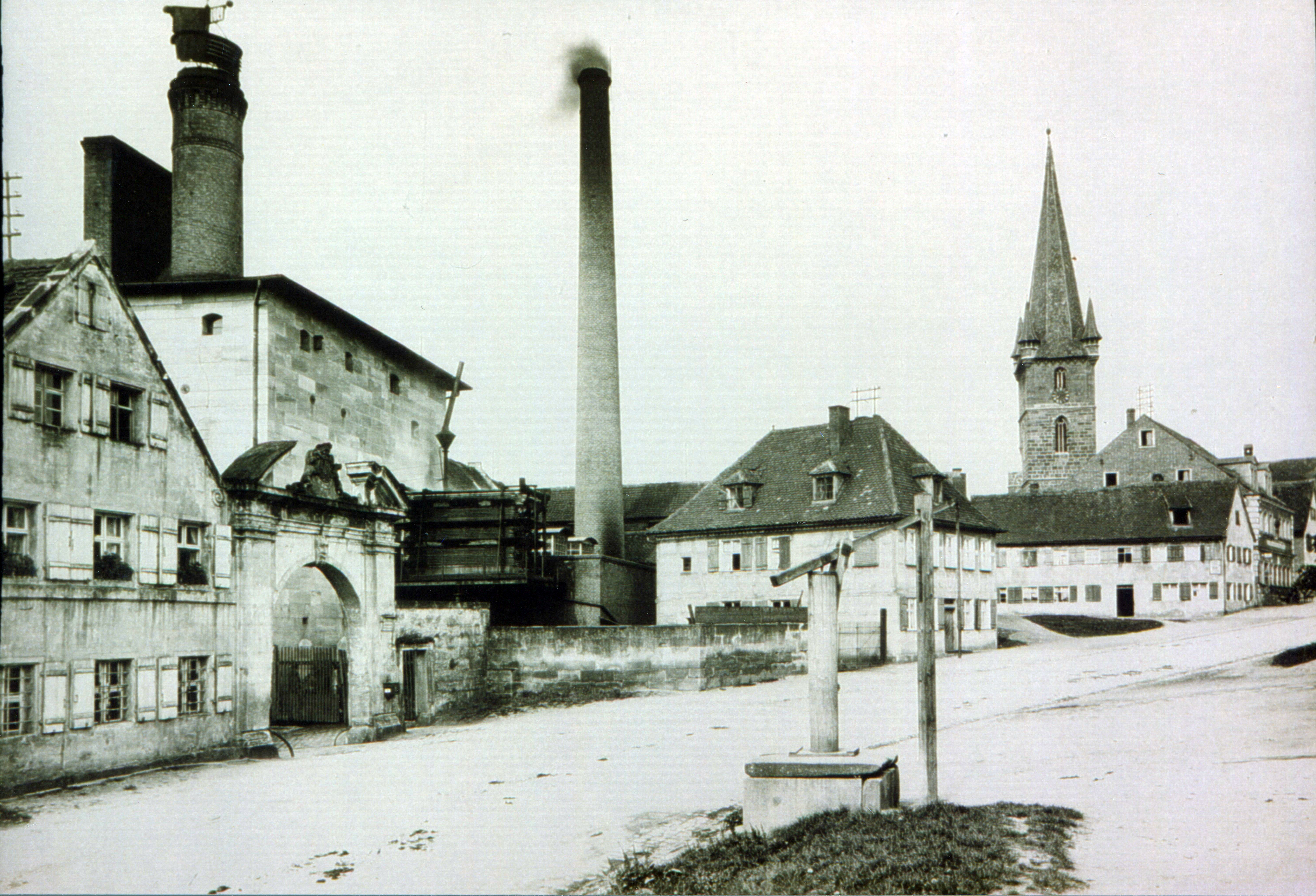 Die Gräflich Pückler-Limpurg'sche Brauerei und die Kirche St. Johannis von der Würzburger Straße aus ... Die Gräflich Pückler-Limpurg'sche Brauerei und die Kirche St. Johannis von der Würzburger Straße aus gesehen, ca. 1900<br>Urheber: unbekannt<br>Erstellungsdatum: 1900<br>Lizenz: cc-by-sa-3.0