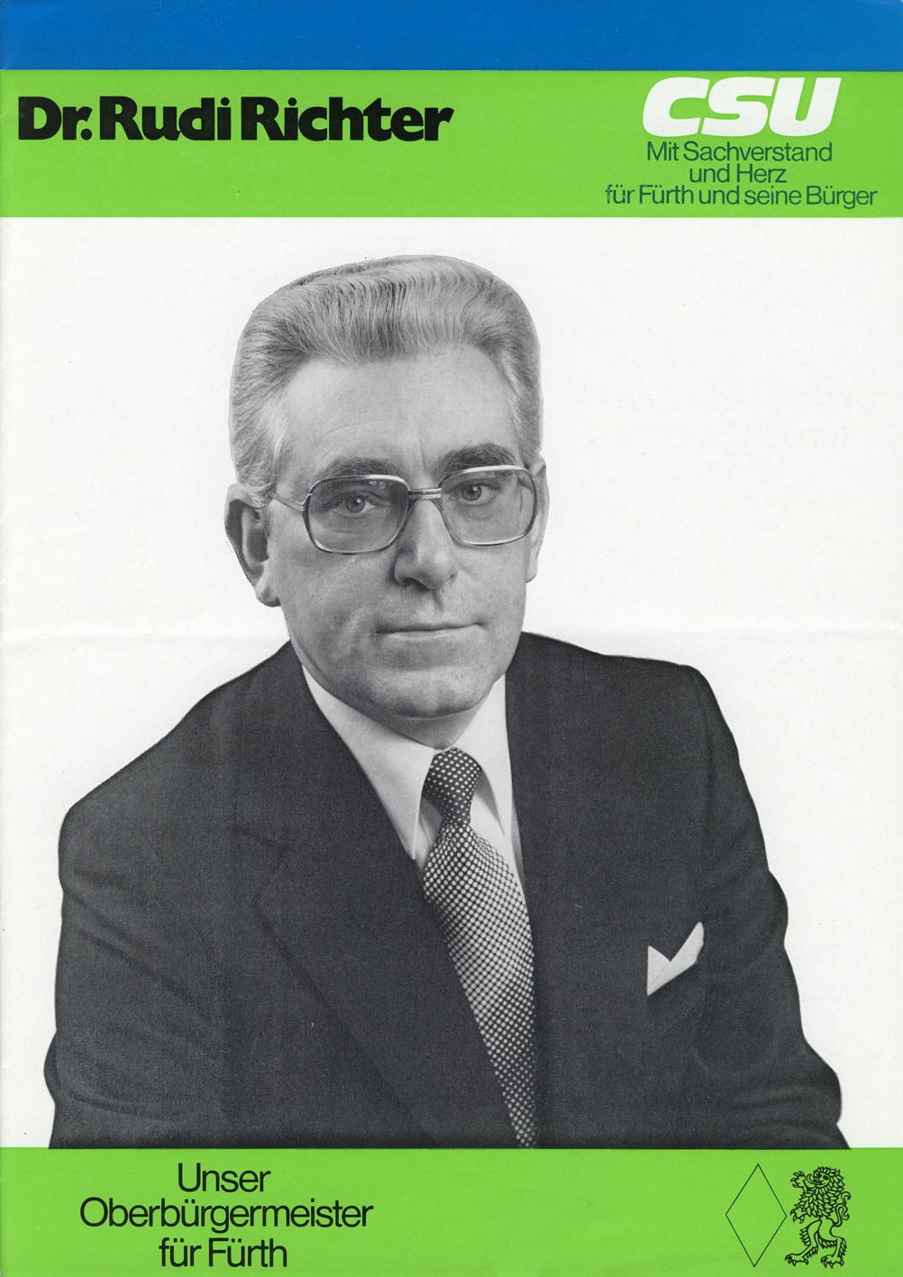 | Beschreibung | OB-Kandidat der CSU 1978 - Dr. Rudi Richter | ||