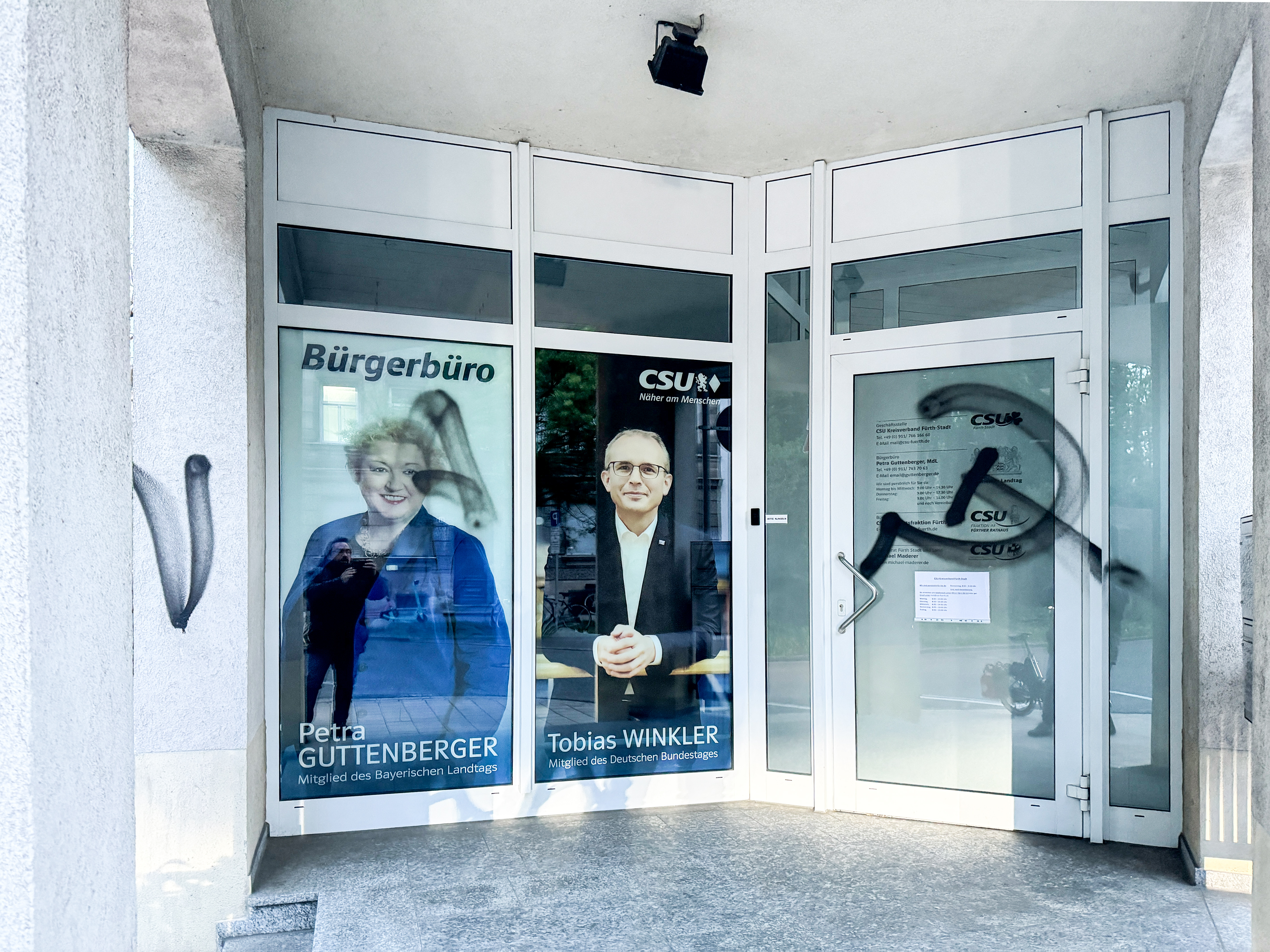 | Beschreibung | Farbanschlag auf das CSU-Büro in der Weiherstraße, April 2024 | ||