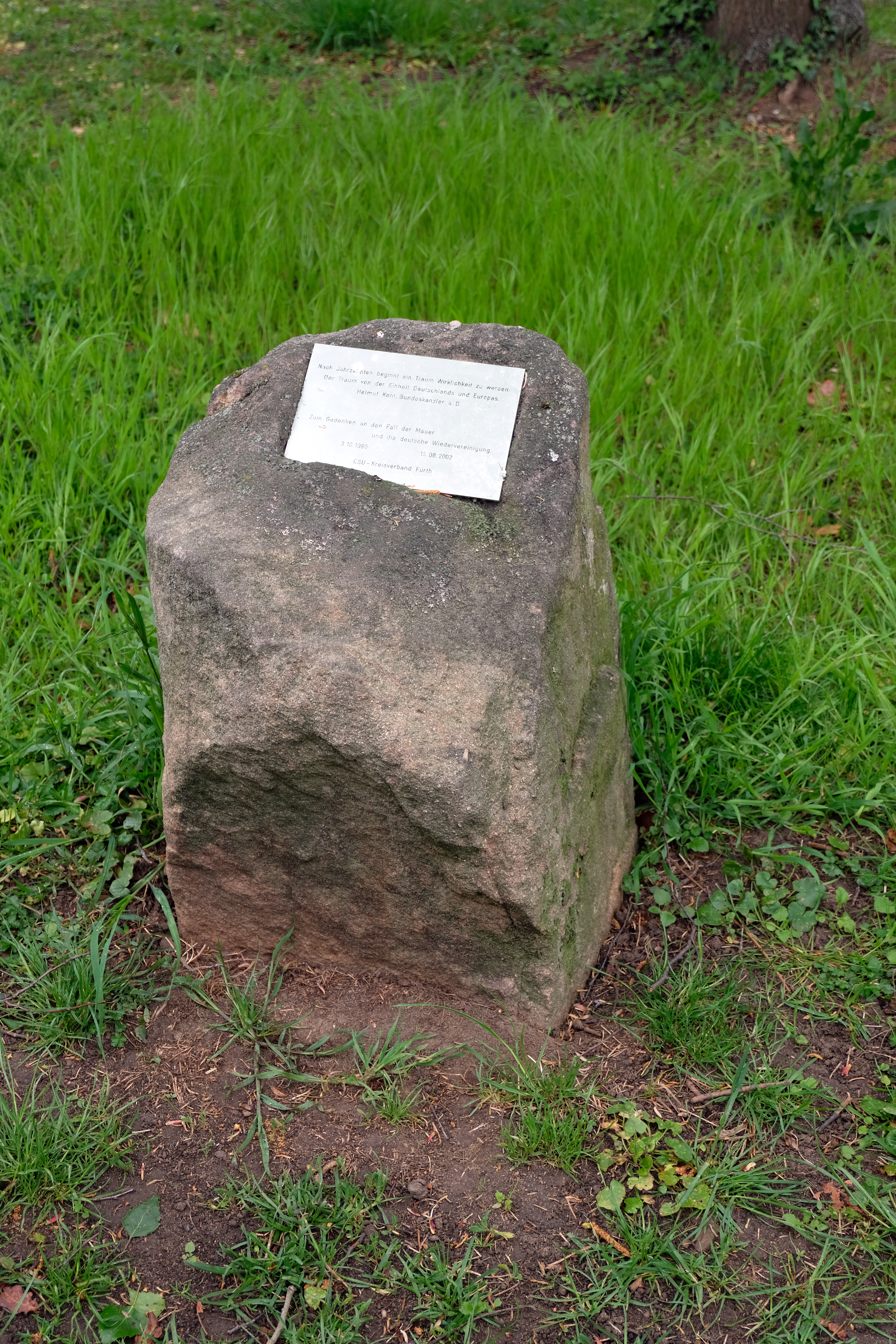 | Dateiinfo (Bild-Unterschrift und Info-Box, automatisch erstellt) | Gedenkstein und -tafel: Linde zur Wiedervereinigung im Stadtpark, April 2017 Urheber: Kamran Salimi<br>Erstellungsdatum: 27. April 2017<br>Über Datum: 1990<br>Lizenz: cc-by-sa-3.0 | ||