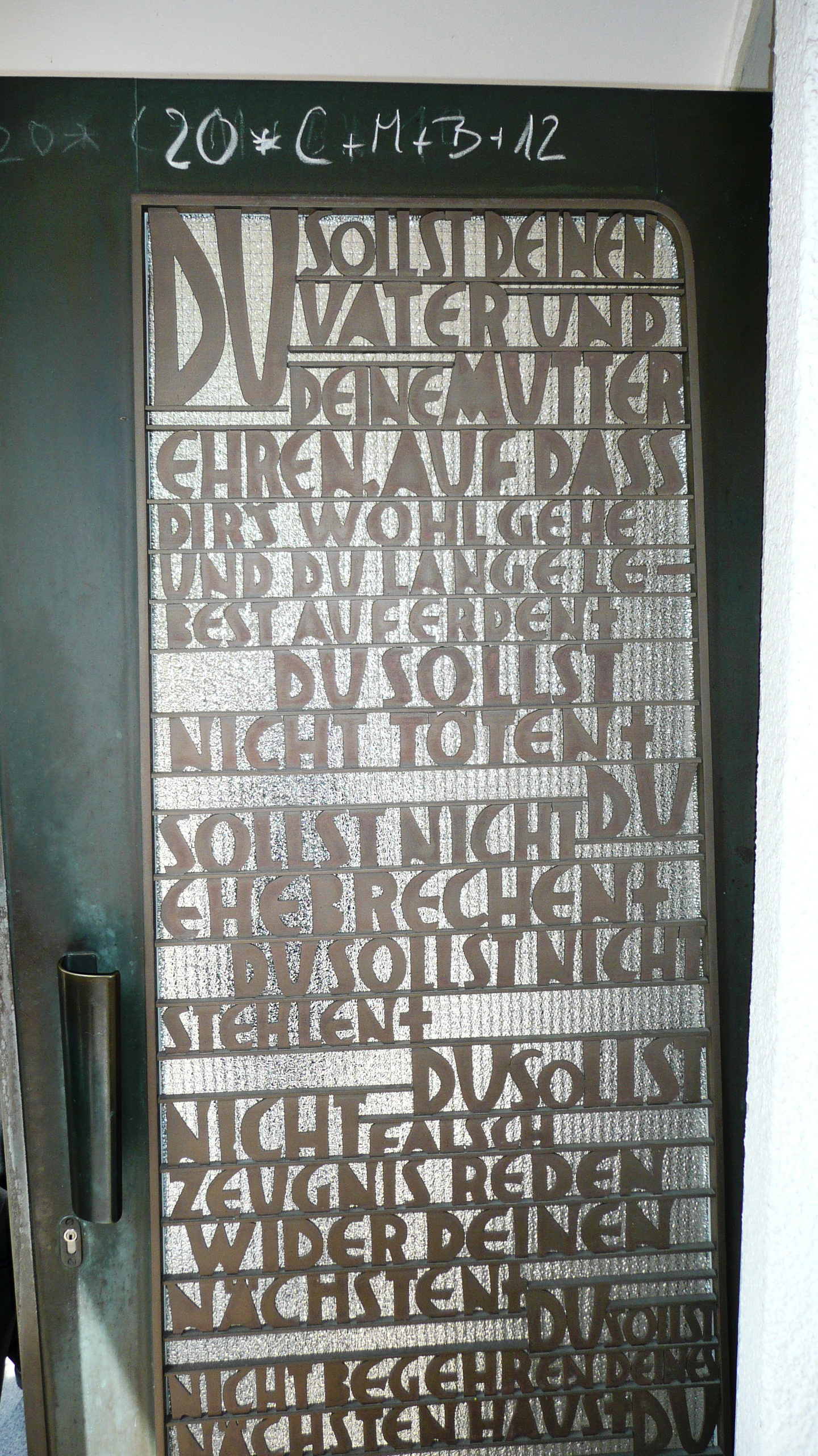 | Beschreibung | Teil des Eingangstores Bronzeguss der 10 Gebote in der Christuskirche Stadeln vom Nürnberger Künstler Wilhelm Schiller 2012. | ||