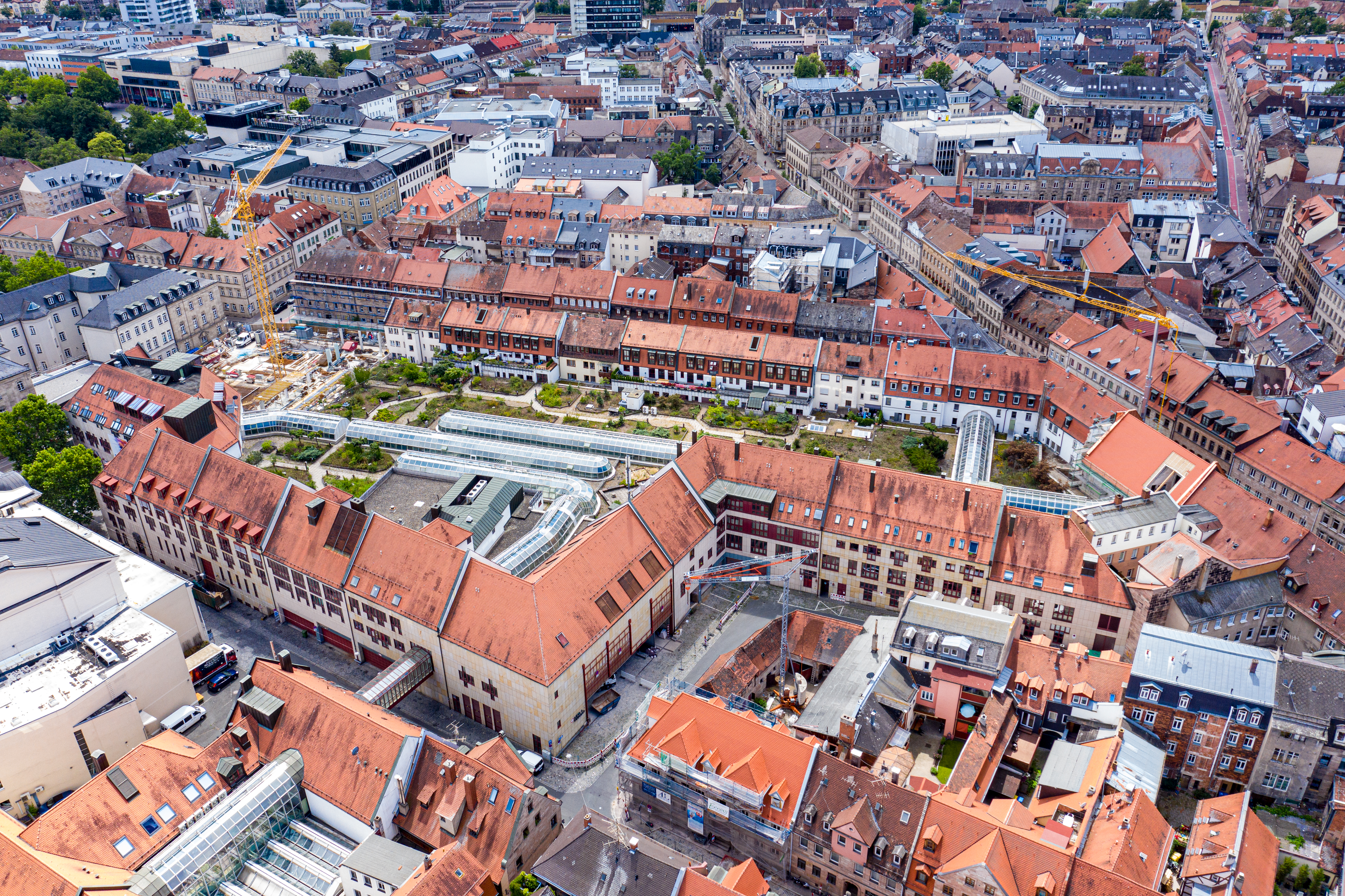 BeschreibungBlick über die Innenstadt, Bildmitte der ehem. City Center - heute die Shoppingmal Flair, Juli 2020