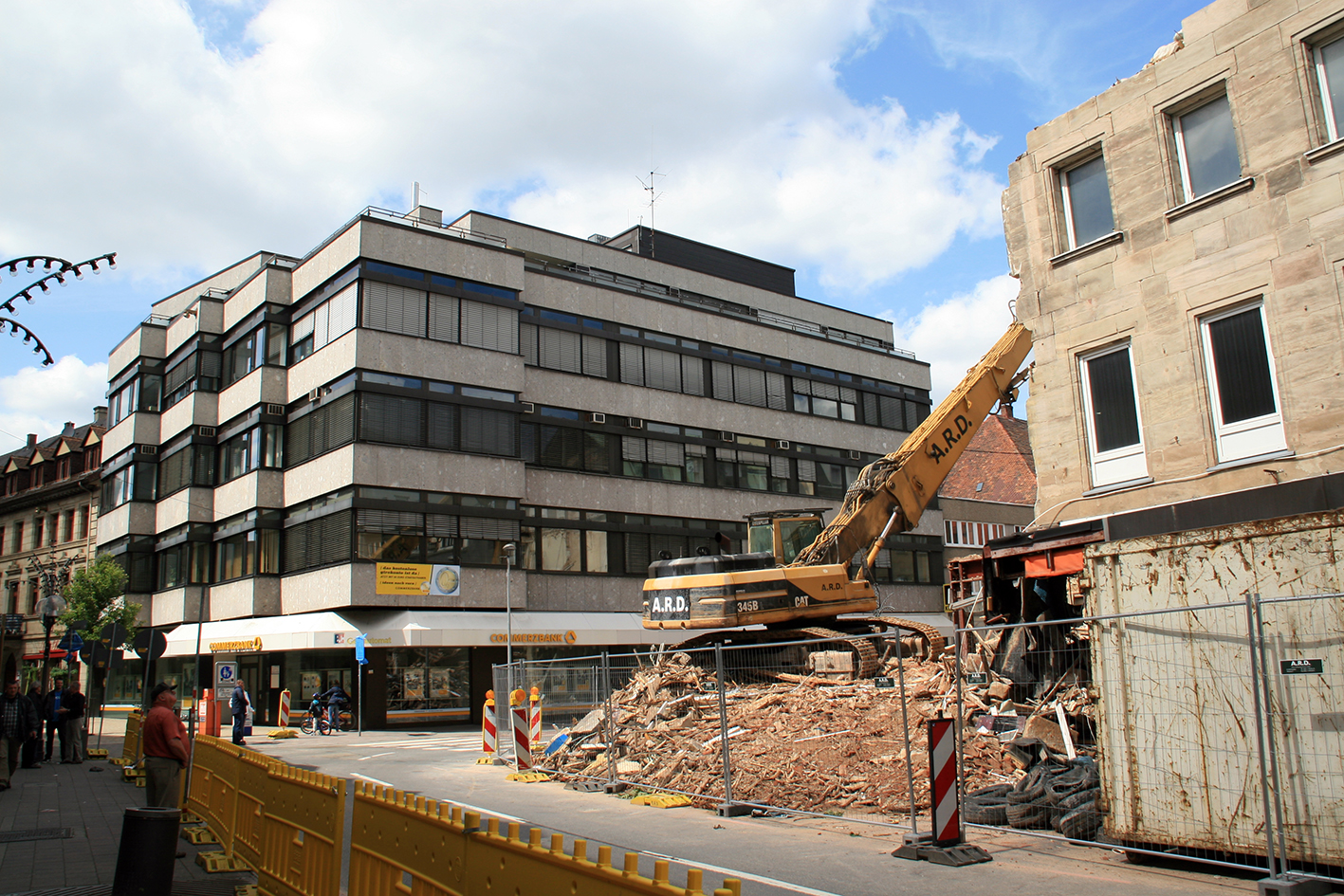 | Beschreibung | Die ehem. Commerzbank in der Rudolf-Breitscheid-Straße, während der Abrissarbeiten des Modehaus Fiedlers, Juni 2013 | ||