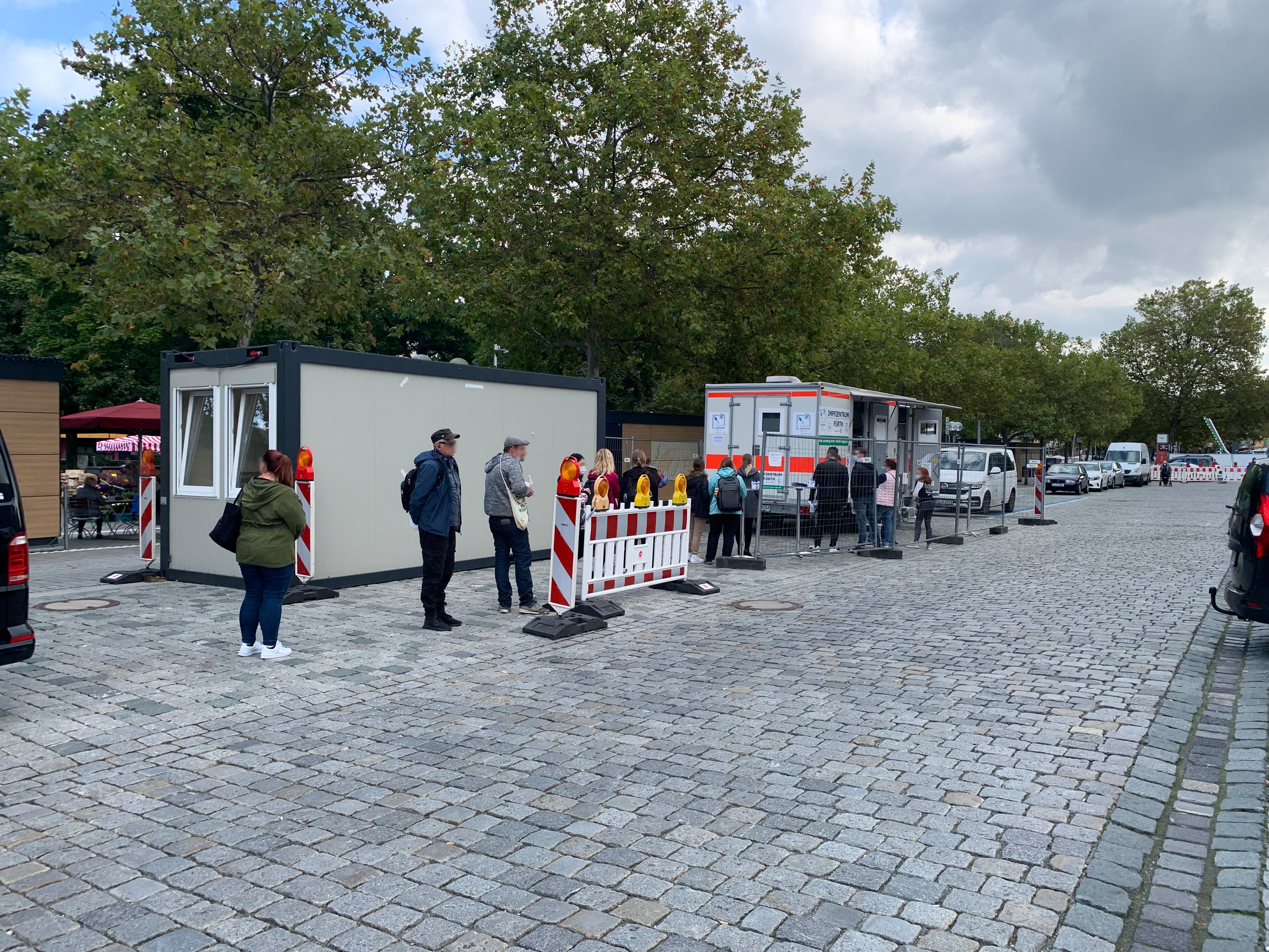 | Beschreibung | Kurz vor der Einführung der kostenpflichtigen Covid-19-Test steigen die Warteschlangen vor den Impfstellen - hier auf der Fürther Freiheit, Okt. 2021 | ||