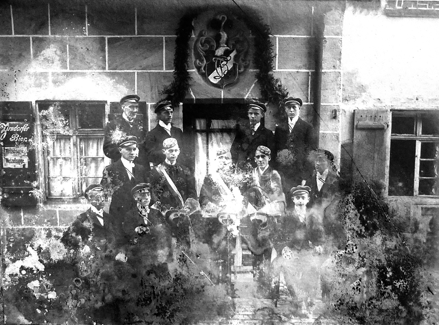 | Beschreibung | Dachbodenfund 2017 in der Gaststätte Zur Mist'n: Bildausschnitt Fechtclub Baruthia Fürth, gegründet 1906 in Fürth, im Hintergrund Gaststätte Zur Mist'n | ||