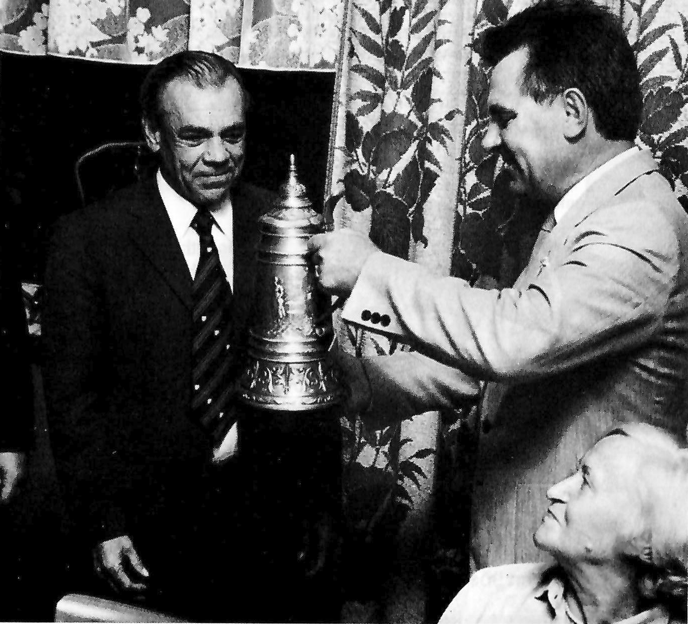 | Beschreibung | Albert Dörfler (links) 1984. Im Vordergrund seine Ehefrau Wilhelma ("Helma"). Rechts Ludwig Maar | ||