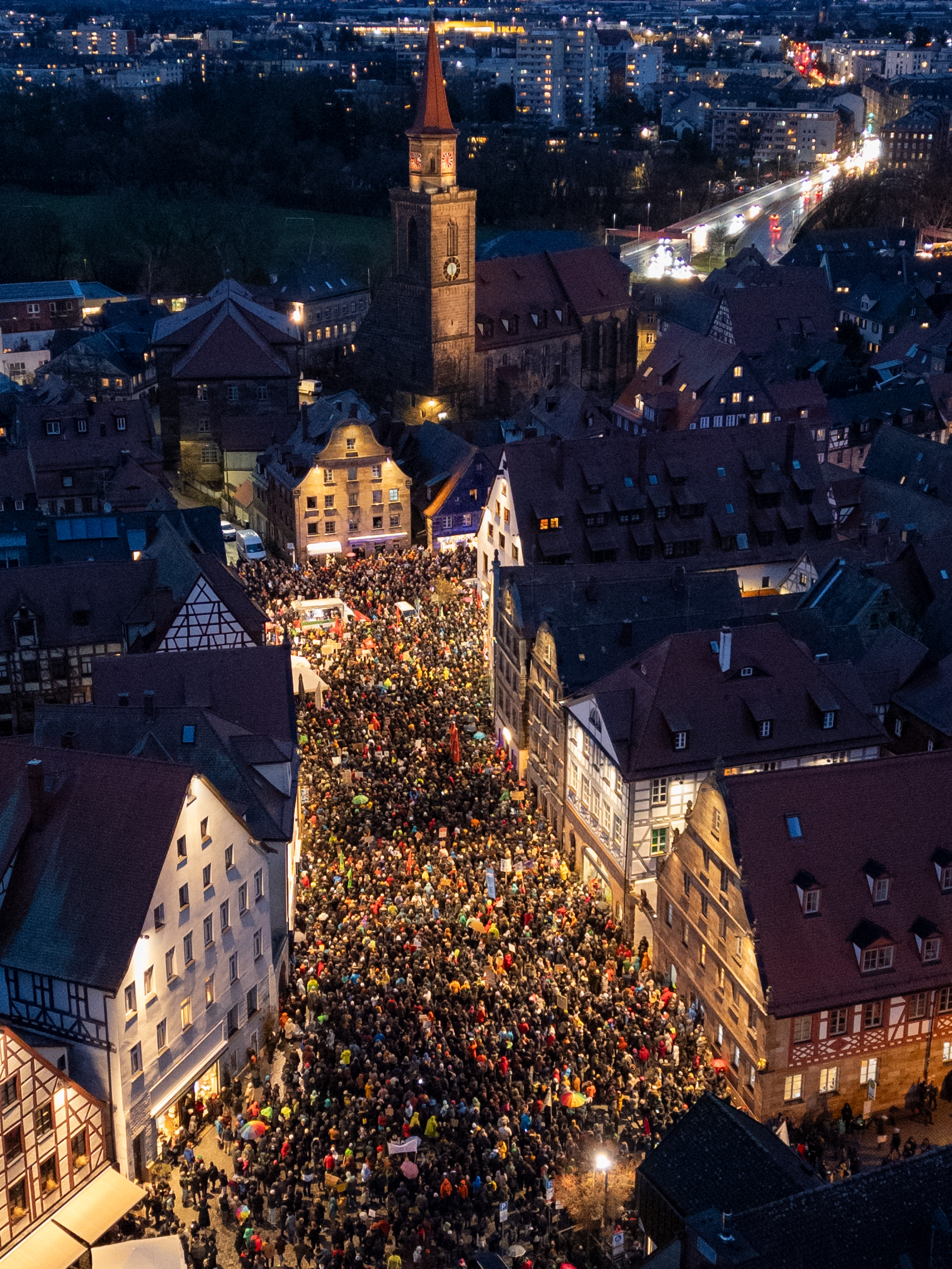 | Beschreibung | Luftbild Demonstration am Grünen Markt gegen Rechtsextremismus, 26. Januar 2024 | ||