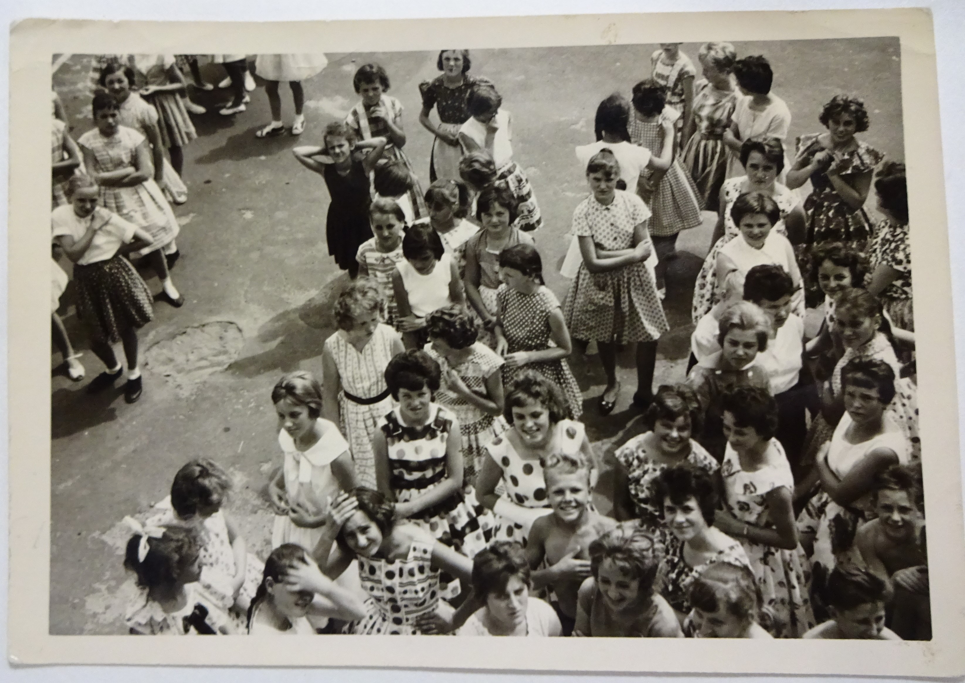 BeschreibungFoto vom Sportfest der ehem. Gemeinschaftsschule Stadeln von 1960 im Pausenhof vor der Turnhalle.