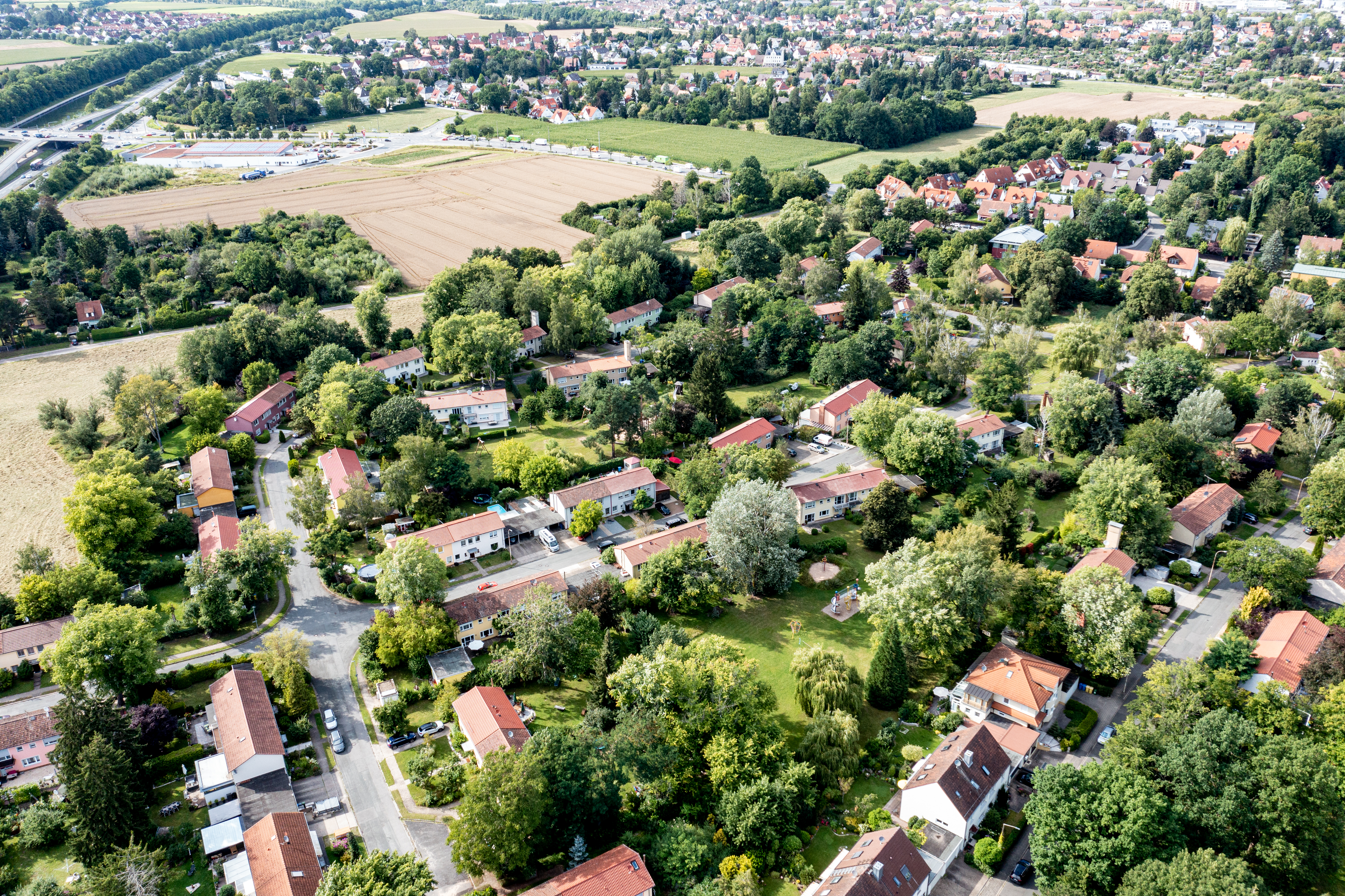 | Beschreibung | Die ehem. US-Offizierssiedlung Dambach mit der Beethoven und Haydnstraße, im Hintergrund das geplante Bebauungsgebiet Dambach West und Unterfürberg, Aug. 2021 | ||