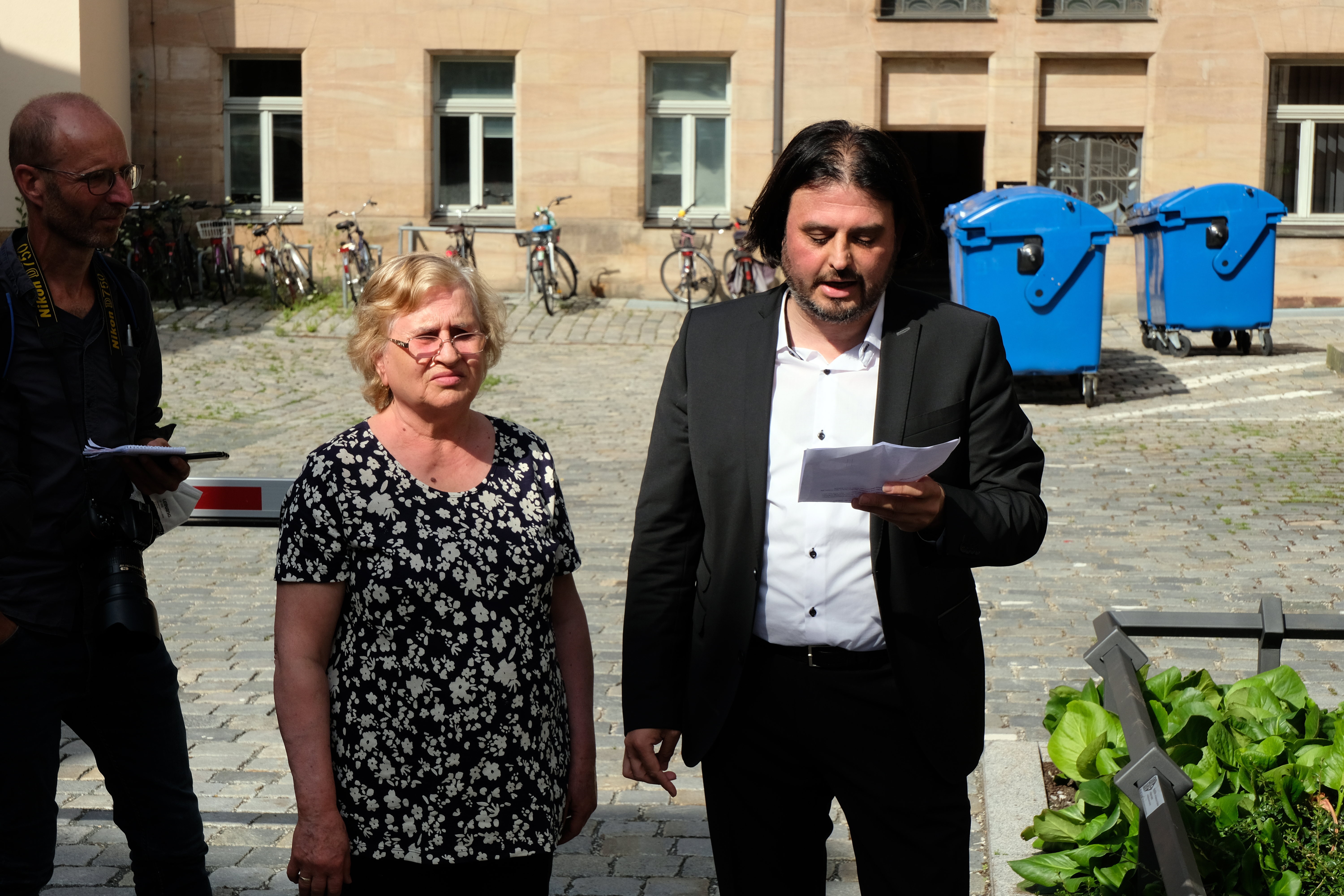 | Beschreibung | Ayhan Yesil mit Mutter bei der Einweihung des Denkmals zum Dank der Gastarbeiter in Fürth, Juli 2021 | ||