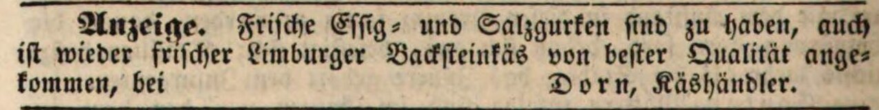 BeschreibungZeitungsinserat des Käsehändlers Leonhard Dorn, August 1839