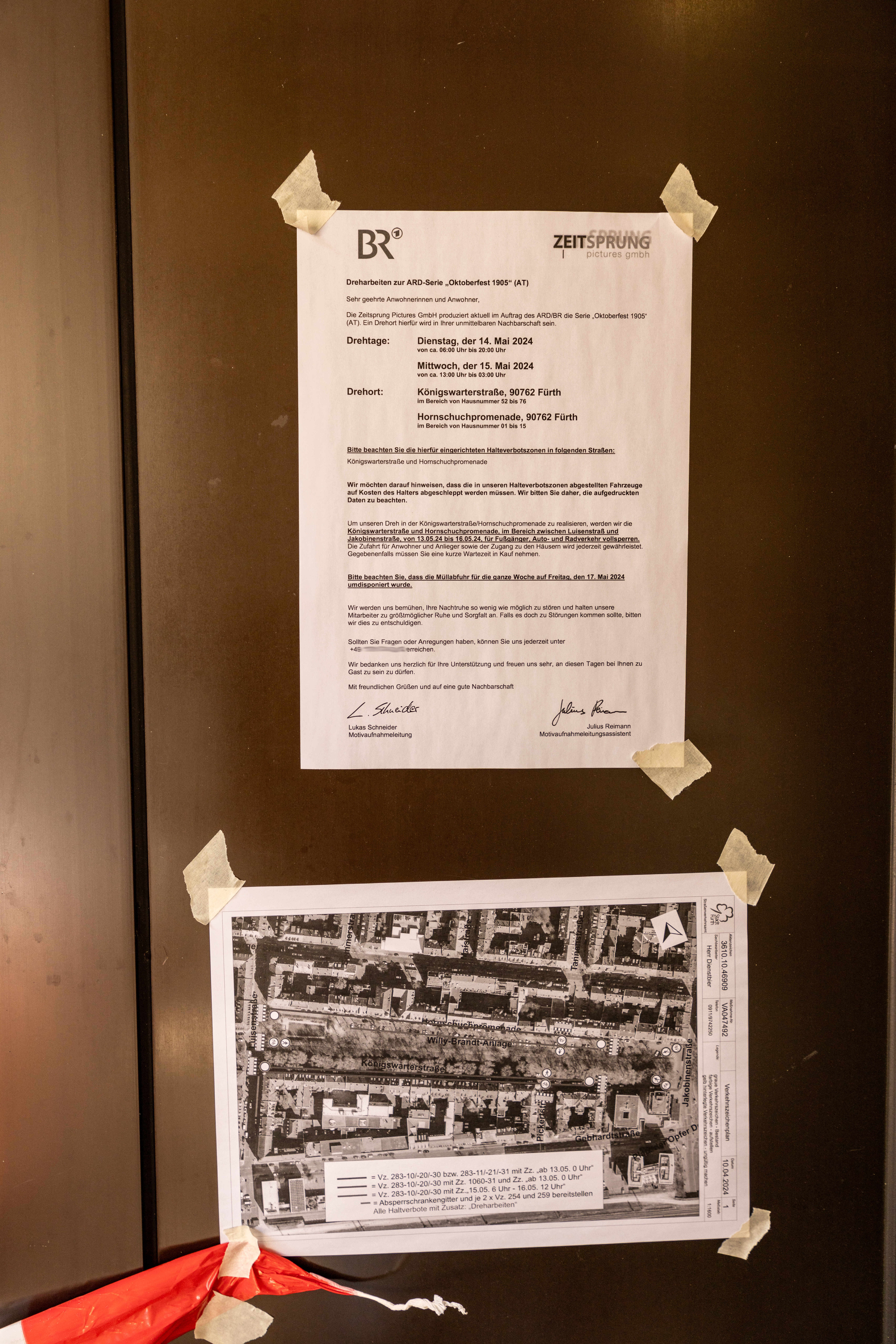 | Beschreibung | Dreharbeiten zu der BR TV-Serie Oktoberfest 1905 in der Hornschuchpromenade, Mai 2024 | ||