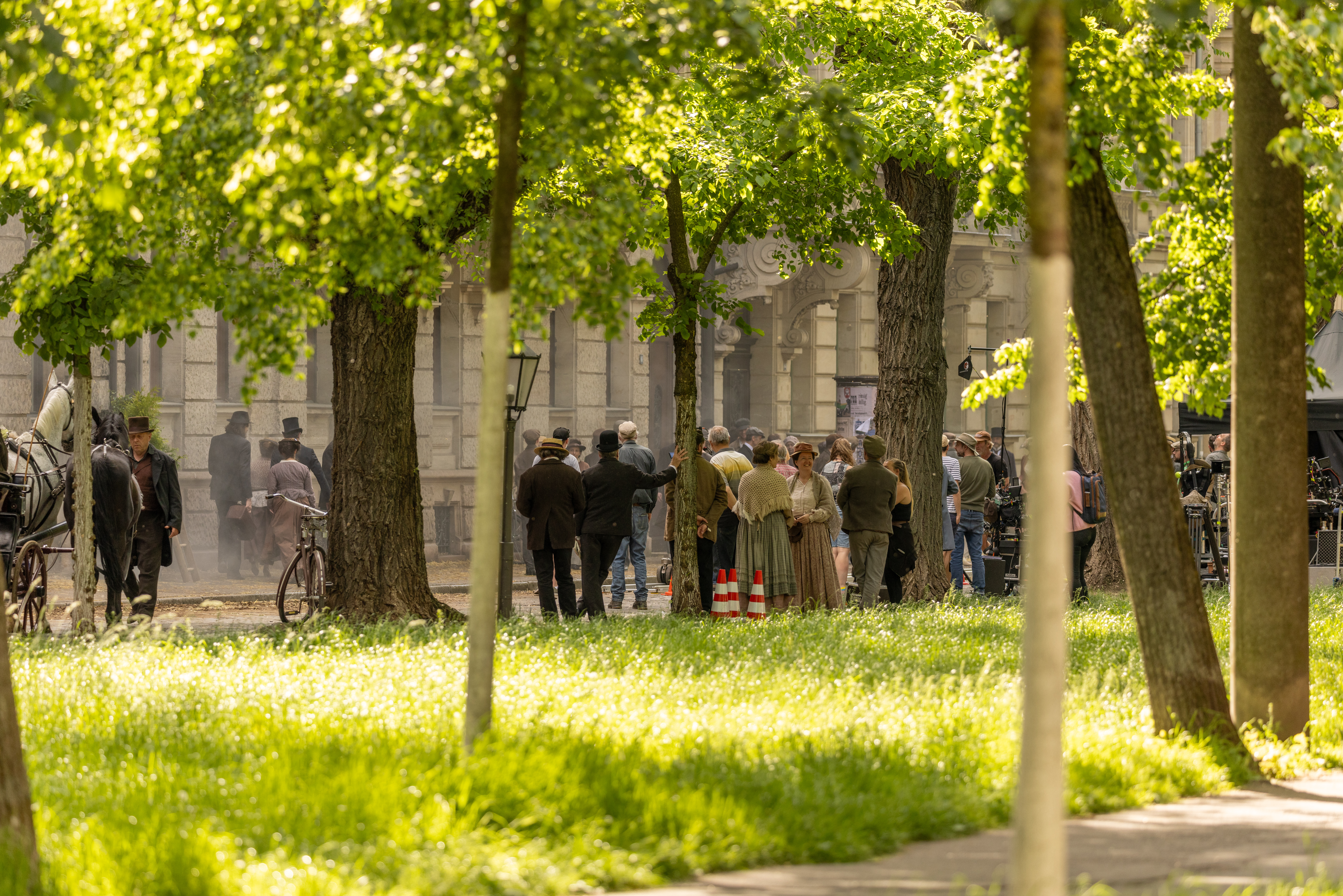 | Beschreibung | Dreharbeiten zu der BR TV-Serie Oktoberfest 1905 in der Hornschuchpromenade, Mai 2024 | ||