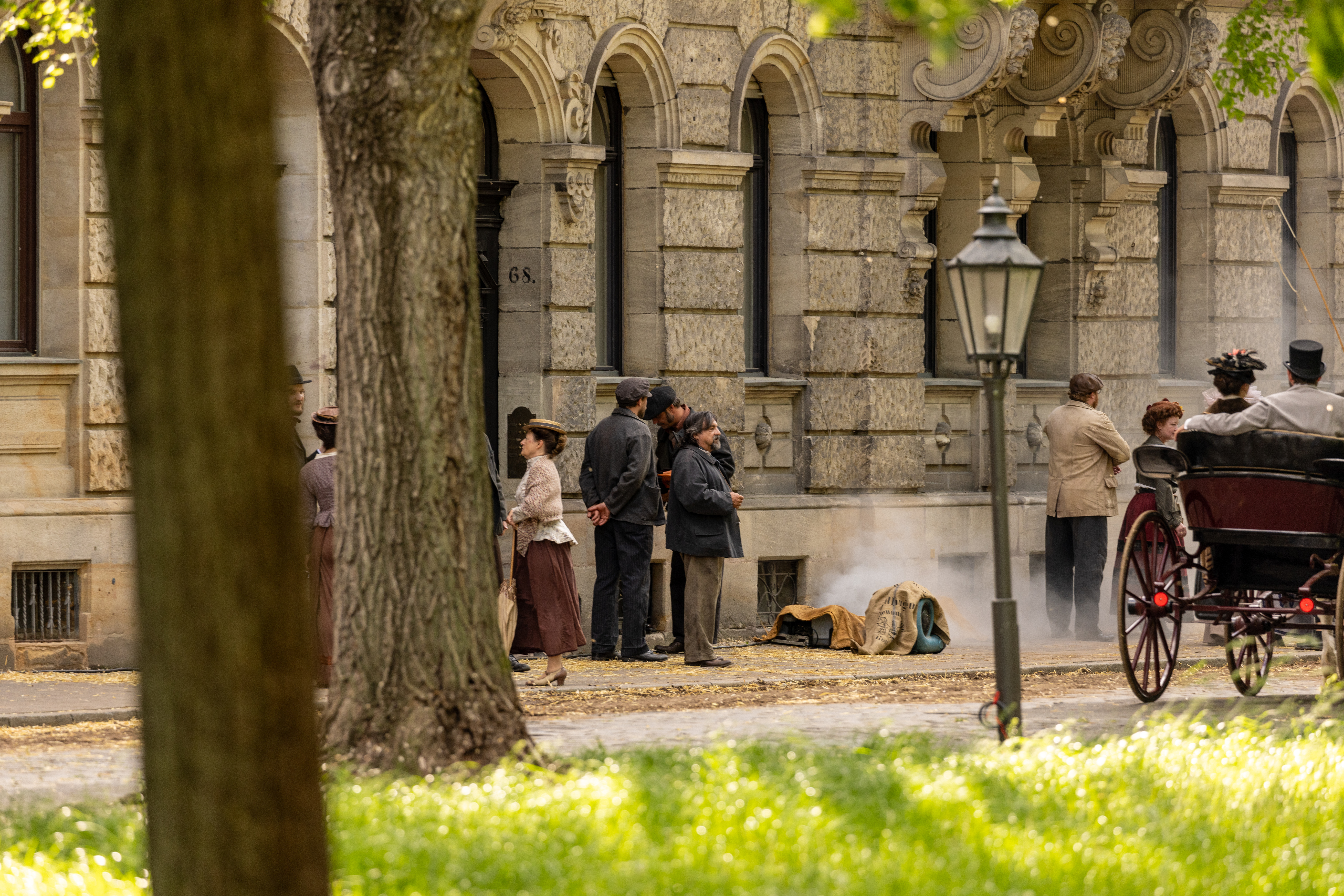 | Beschreibung | Dreharbeiten zu der BR TV-Serie Oktoberfest 1905 in der Hornschuchpromenade, Mai 2024 | ||