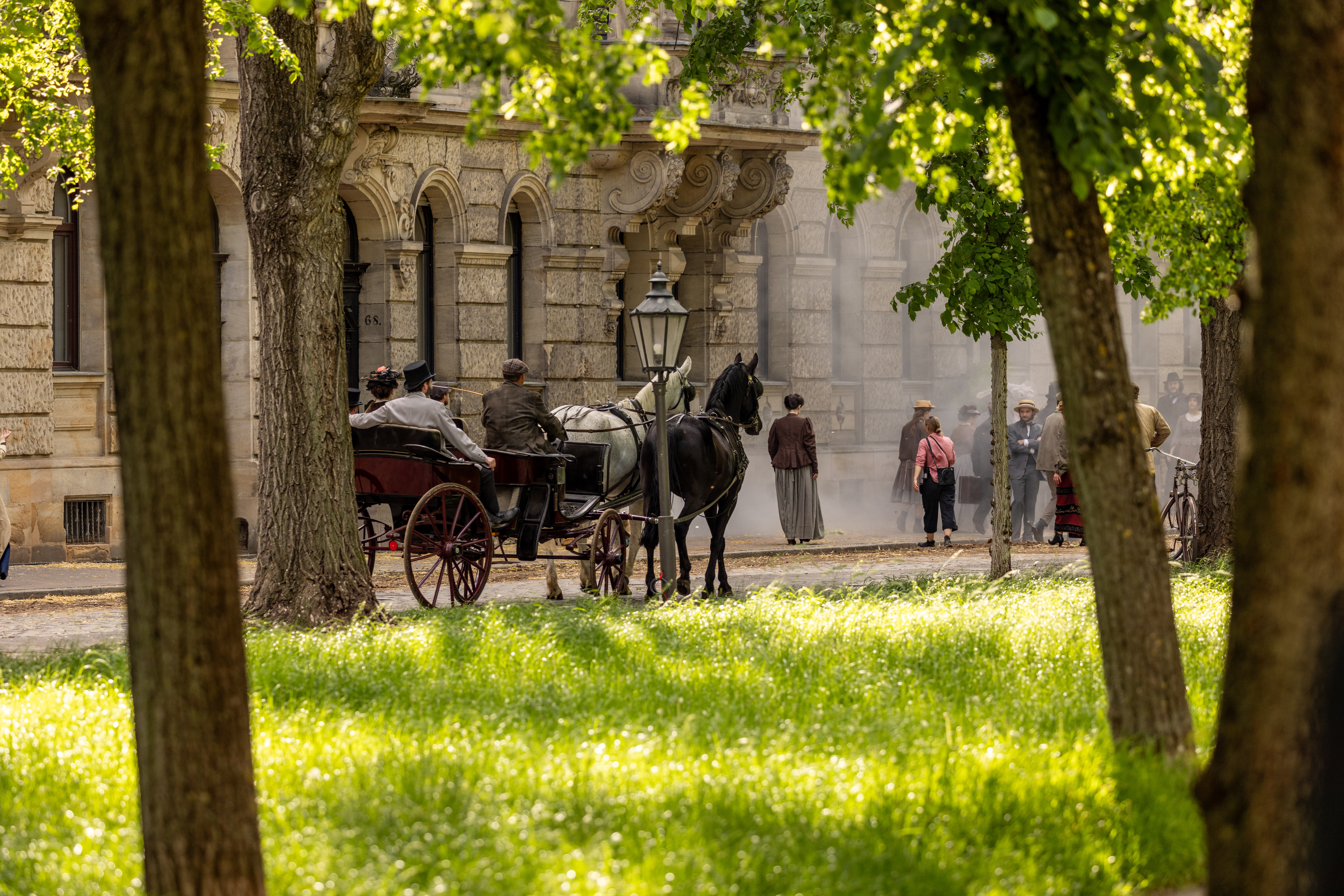 | Beschreibung | Dreharbeiten zu der BR TV-Serie Oktoberfest 1905 in der Hornschuchpromenade, Mai 2024 | ||