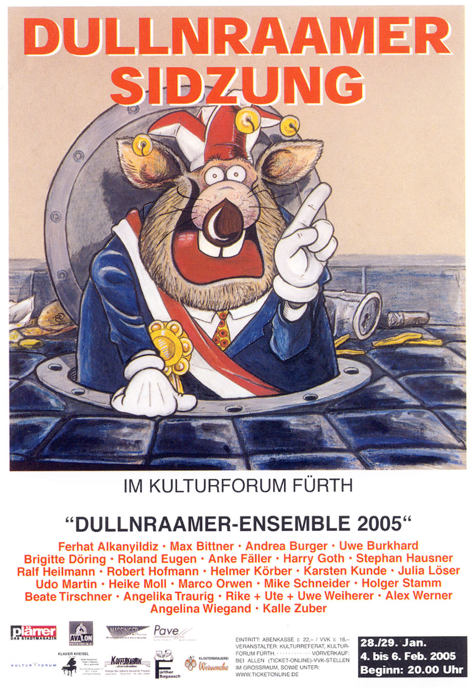 | Dateiinfo (Bild-Unterschrift und Info-Box, automatisch erstellt) | Flyer für die jährlich statt findende "Dullnraamer Sidzung" Erstellungsdatum: 2005<br>Über Datum: 28. Januar 2005<br>Lizenz: cc-by-sa-3.0 | ||