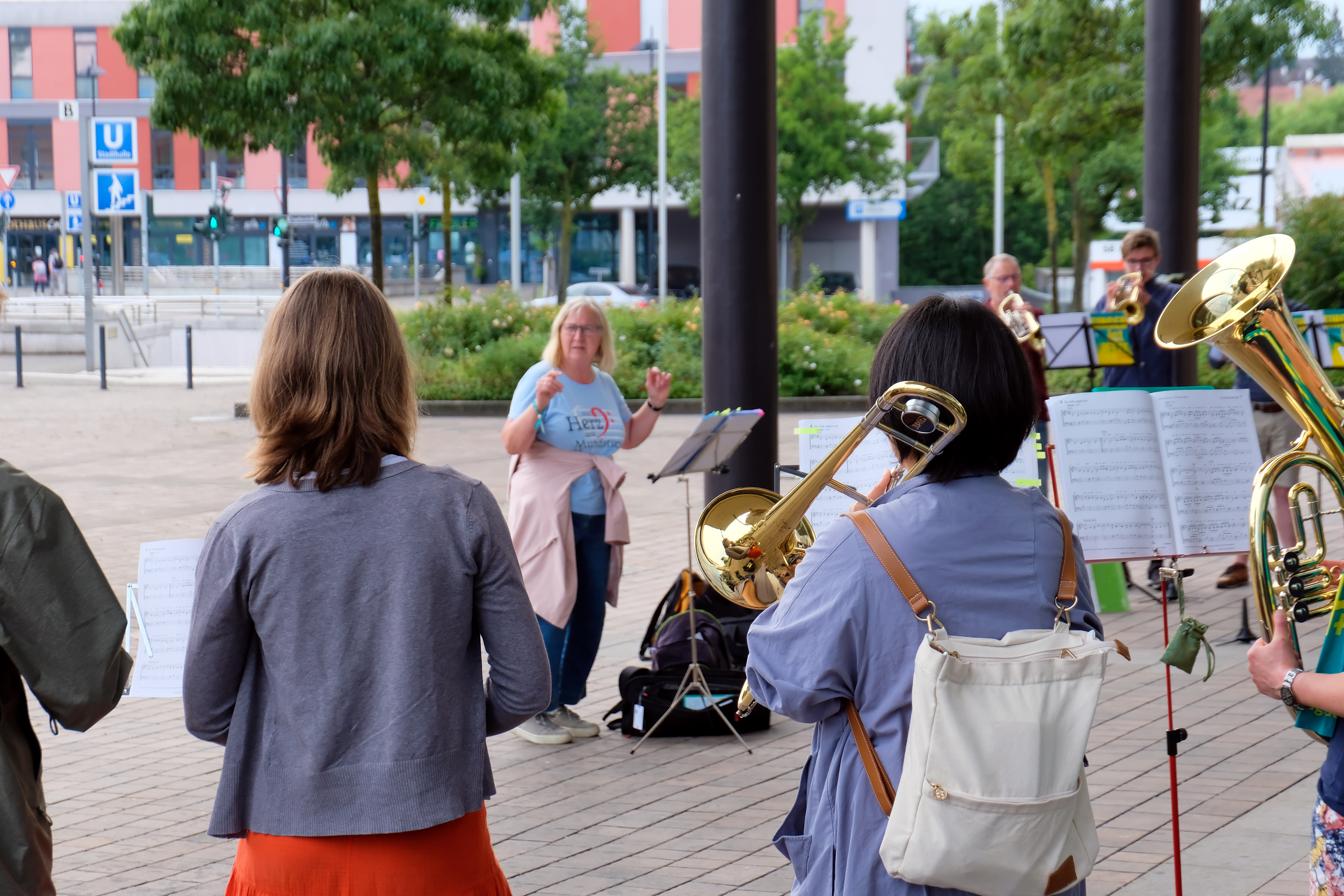 | Beschreibung | Musikkapellen am Evang. Kirchentag in Fürth vor dem ehem. Saturn Elektromarkt, Juni 2023 | ||