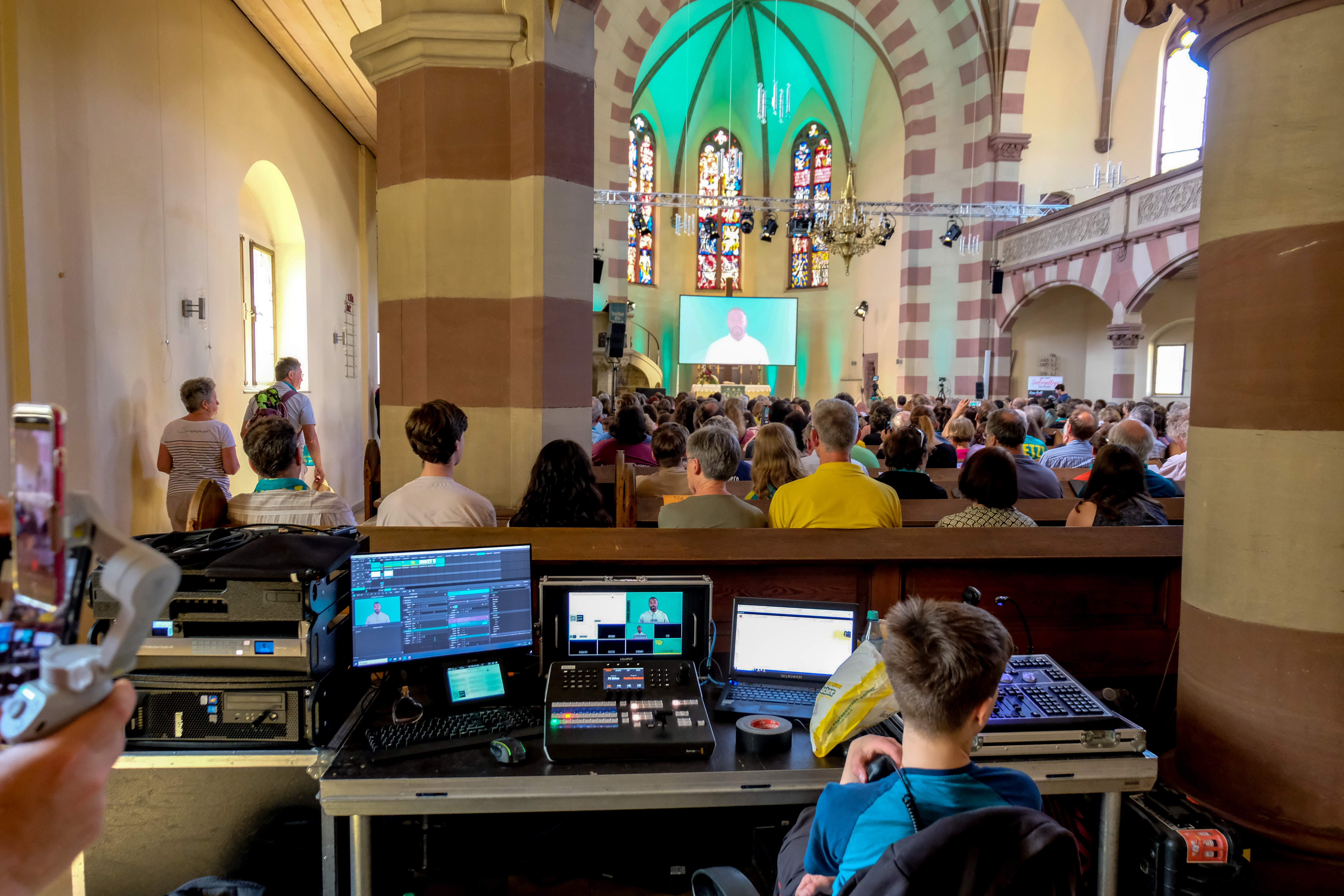 BeschreibungGottesdienst in der Kirche St. Paul mittel einer KI auf der Leinwand während des Evang. Kirchentags, Juni 2023