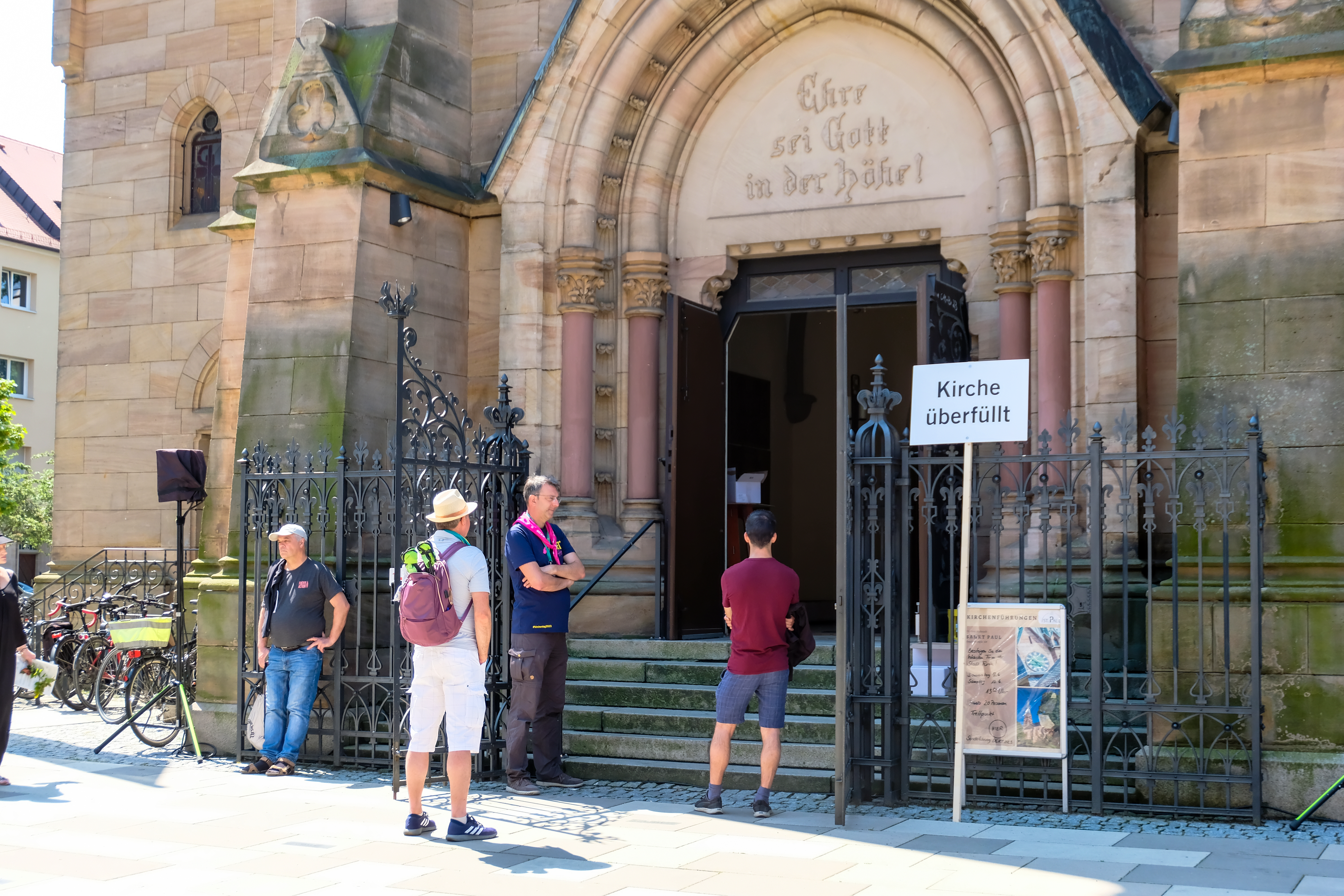 | Beschreibung | Kirche wegen Überfüllung gesperrt - während des Evang. Kirchentags in der Kirche St. Paul in der Südstadt, Juni 2023 | ||