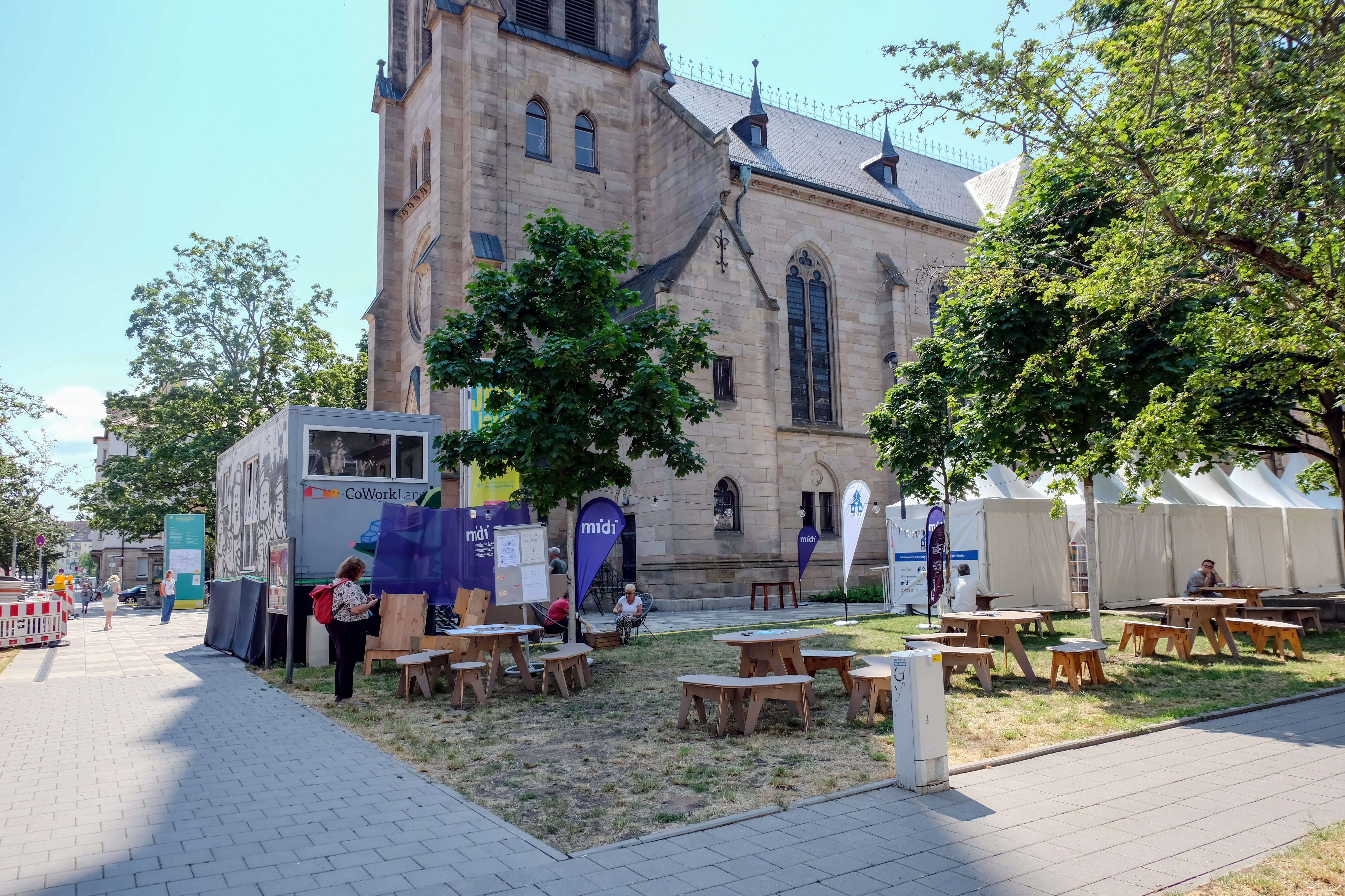 | Beschreibung | Coworking-Space Room während des Evang. Kirchentags vor der Kirche St. Paul in der Südstadt, Juni 2023 | ||