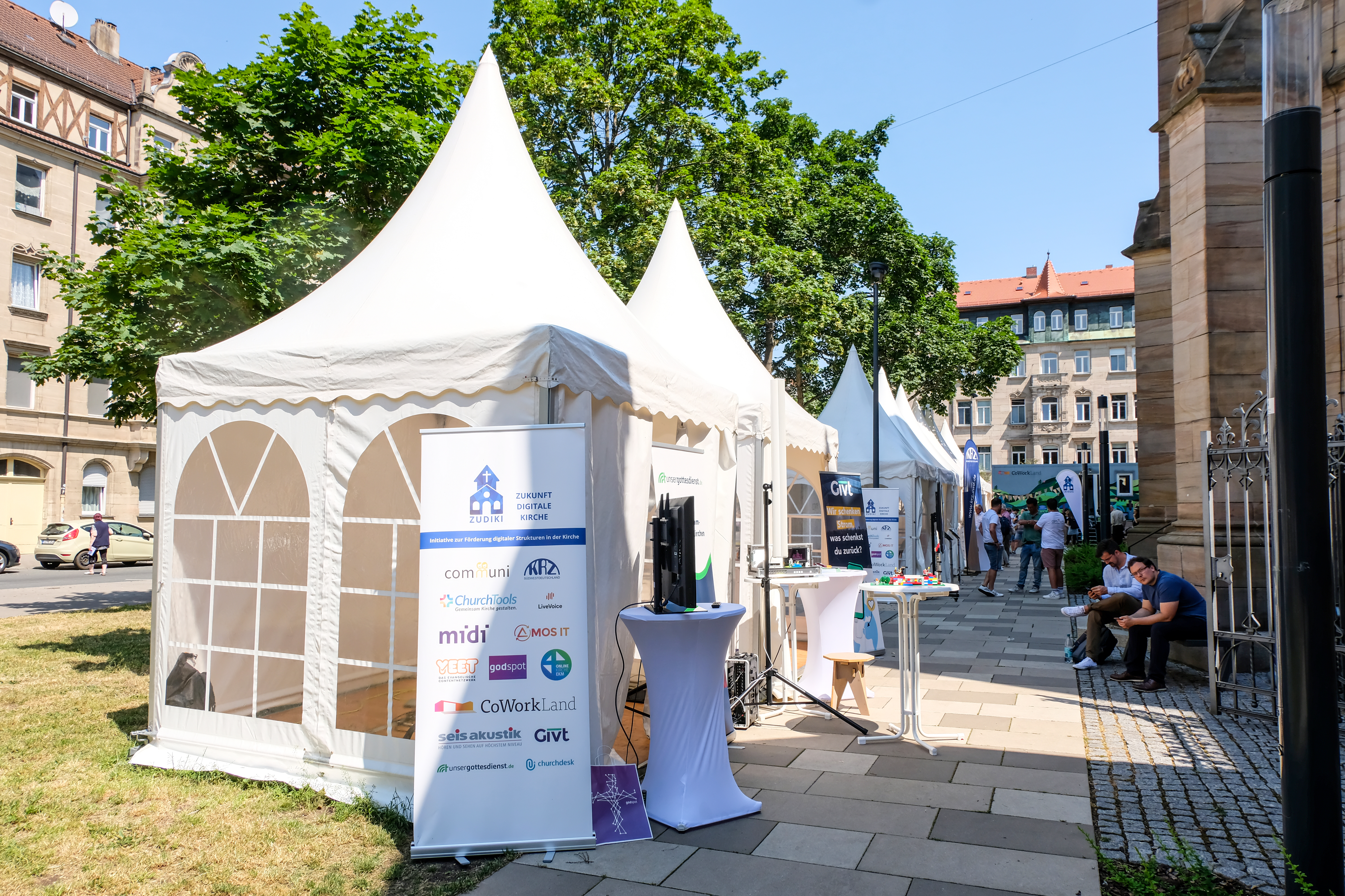 | Beschreibung | Infostände der "Zukunft Digitale Kirche" vor der St. Paul während des Evang. Kirchentags, Juni 2023 | ||