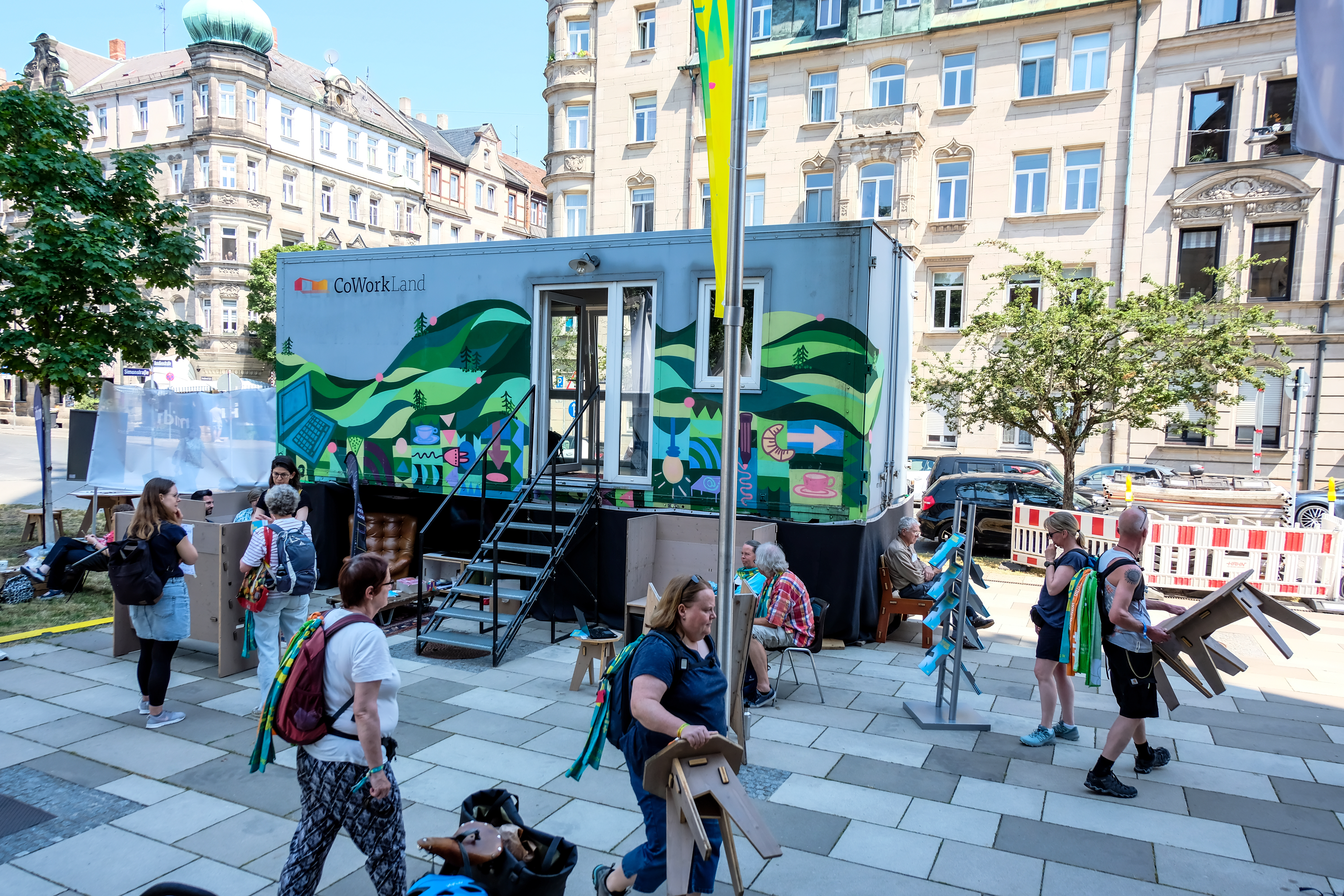 | Beschreibung | Coworking-Space Room während des Evang. Kirchentags vor der Kirche St. Paul in der Südstadt, Juni 2023 | ||