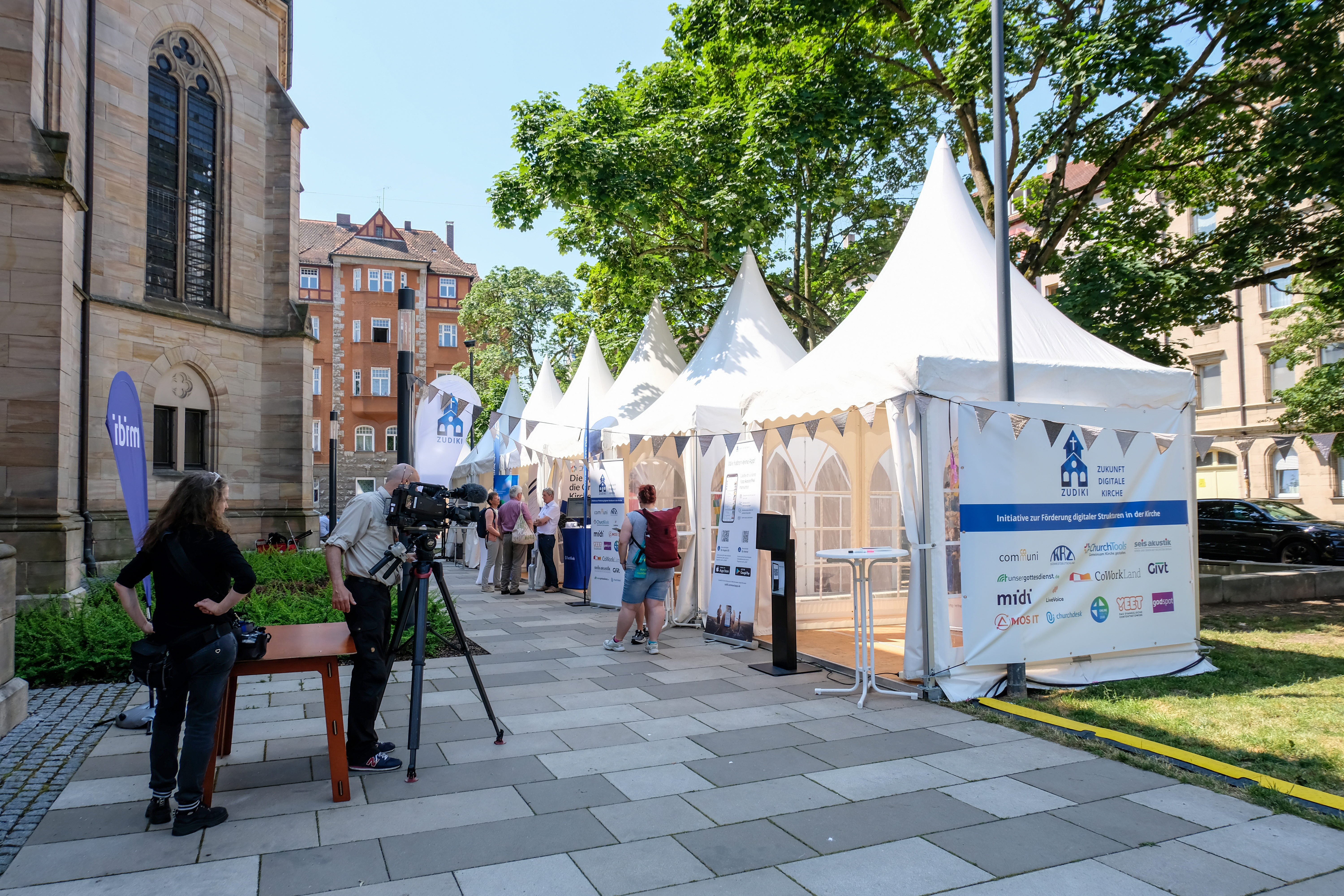 | Beschreibung | Infostände der "Zukunft Digitale Kirche" vor der St. Paul während des Evang. Kirchentags, Juni 2023 | ||