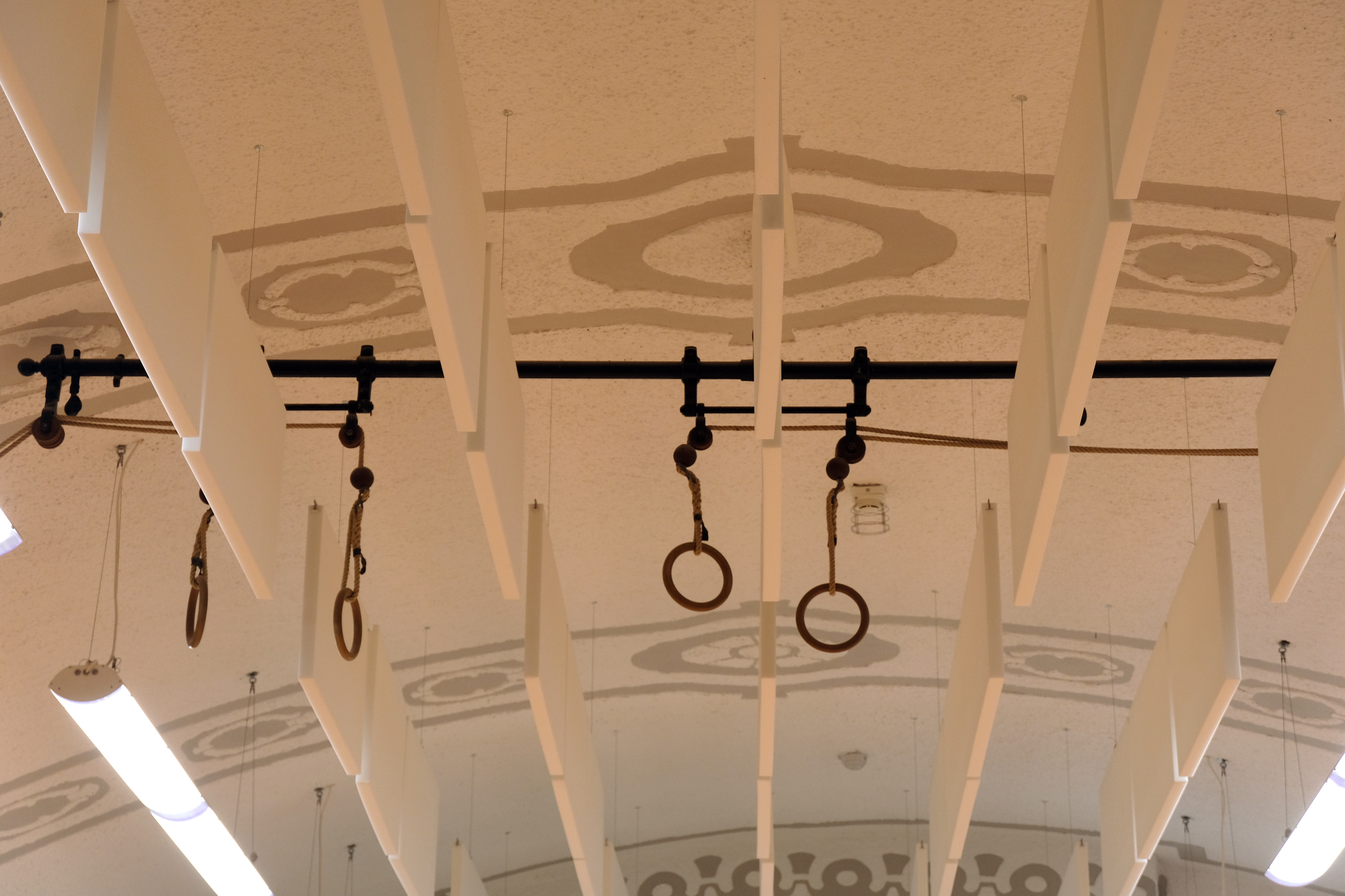 | Beschreibung | Ehem. Eichamt am Helmplatz - die noch im Original vorhandenen Turnringe im 2. OG, Jan. 2019 | ||