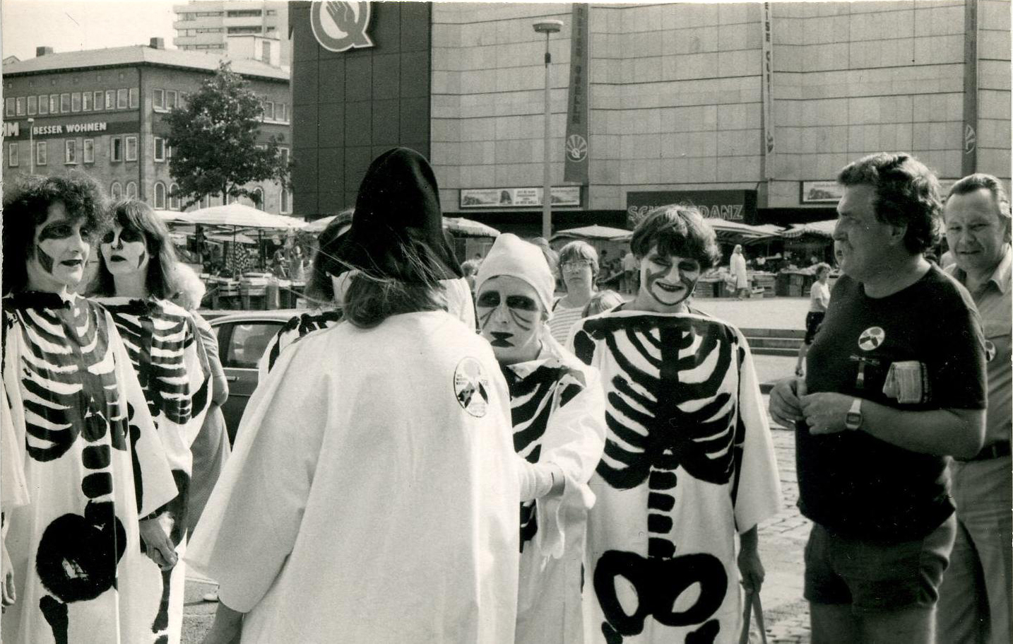 | Beschreibung | Elke Efstratiou mit der ÖTV-Frauengruppe am Antikriegstag vor dem ehem. Quelle-Kaufhaus, ca. 1983 | ||