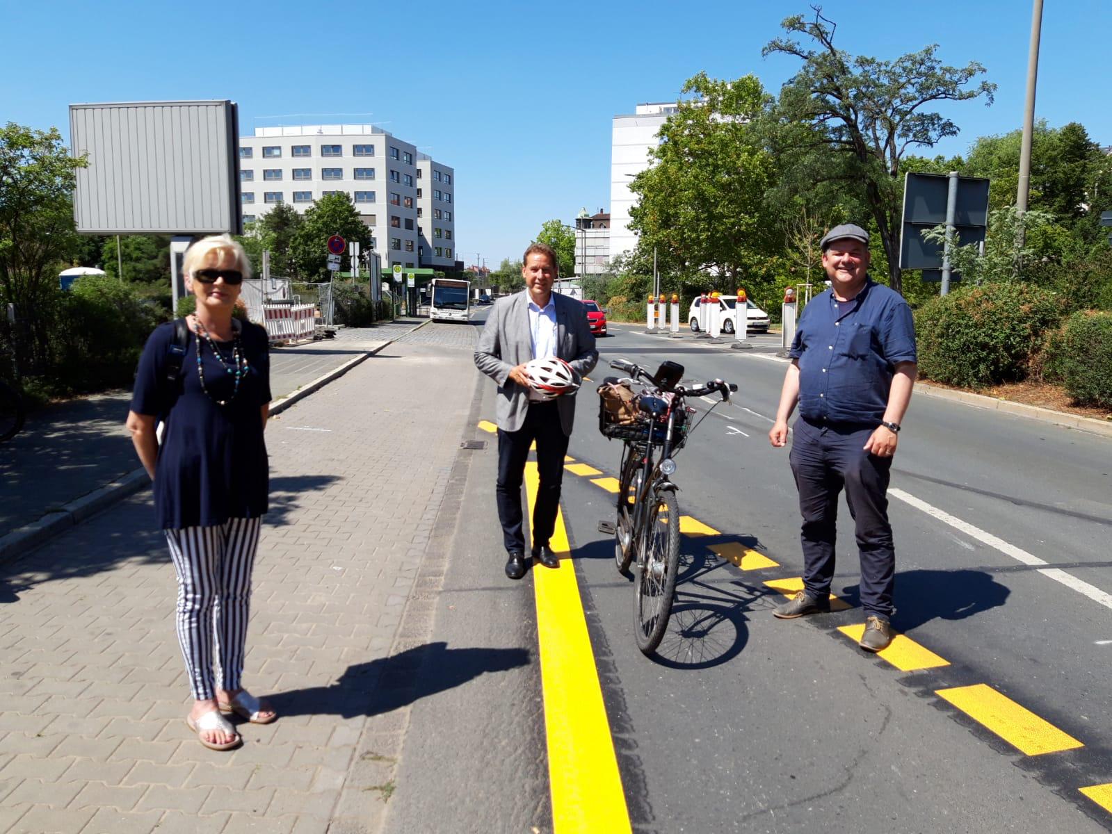 | Beschreibung | Eröffnung des Pop-up-Radwegs in der Hornschuchpromenade mit Bürgermeister Markus Braun und den Stadträten Gabriele Zapf (Grüne) und Ulrich Schönweiß (Linke), Aug. 2020 | ||